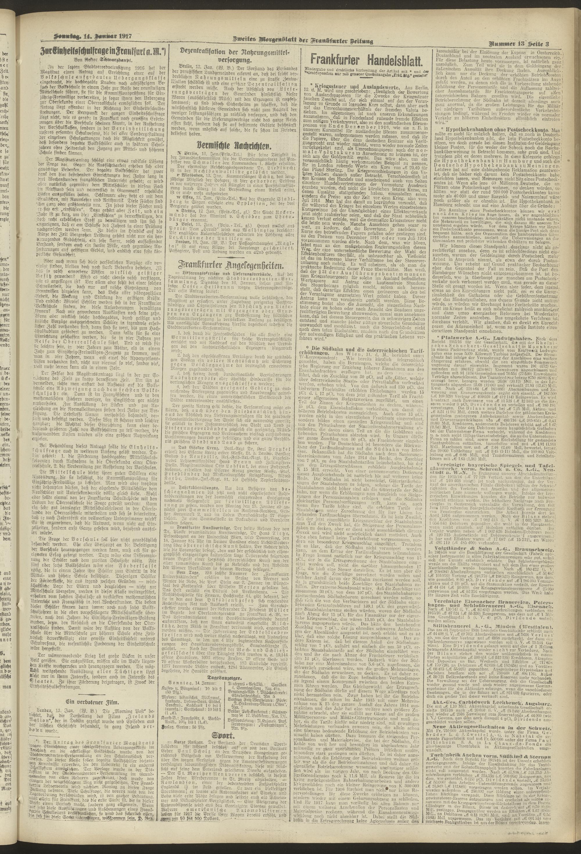 14.01.1917 = Nr. 13. Zweites Morgenblatt