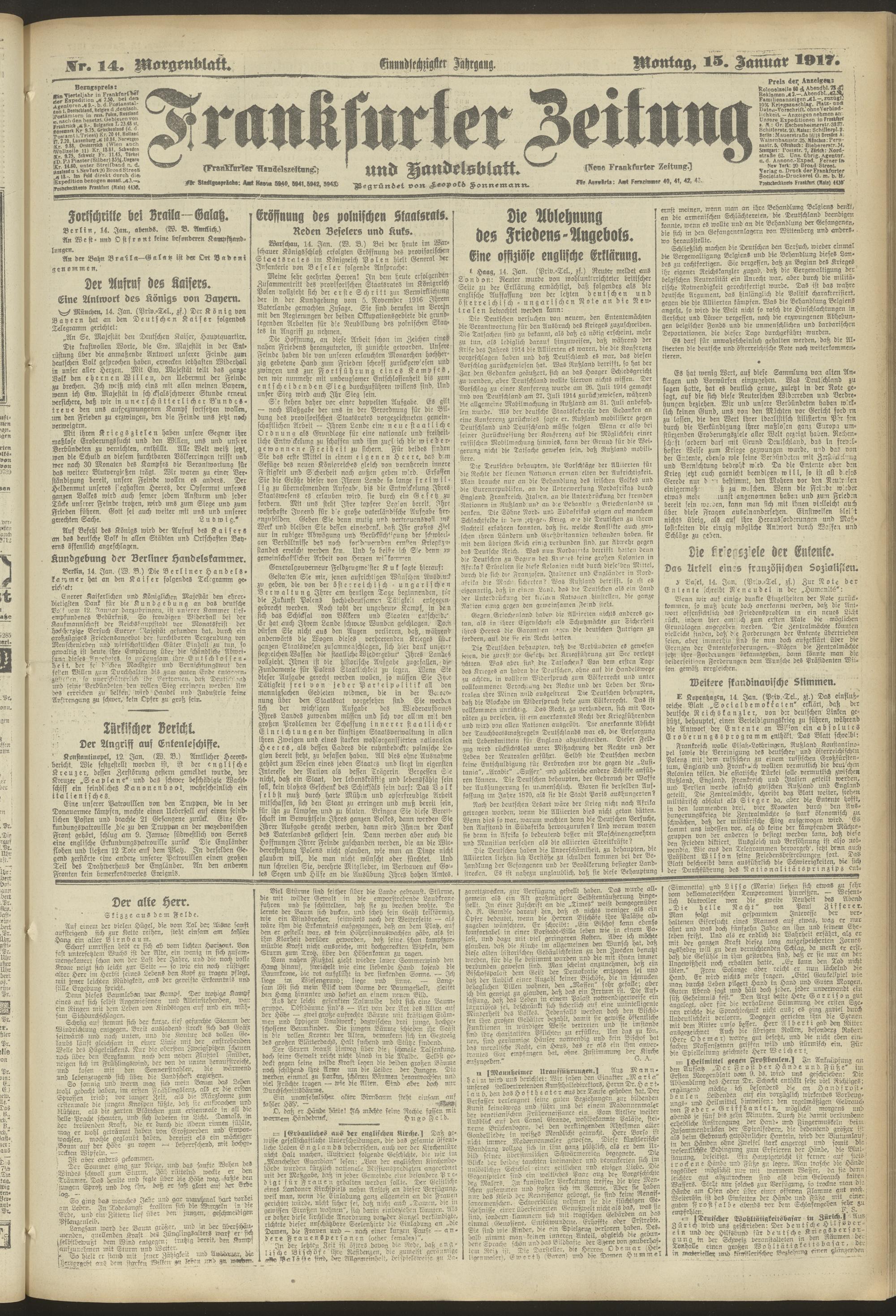 15.01.1917 = Nr. 14. Morgenblatt