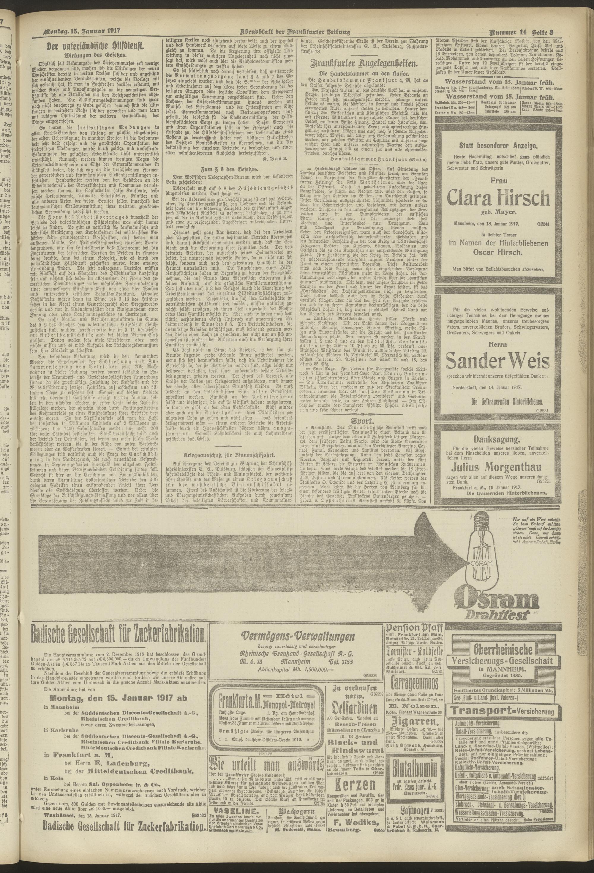15.01.1917 = Nr. 14. Abendblatt