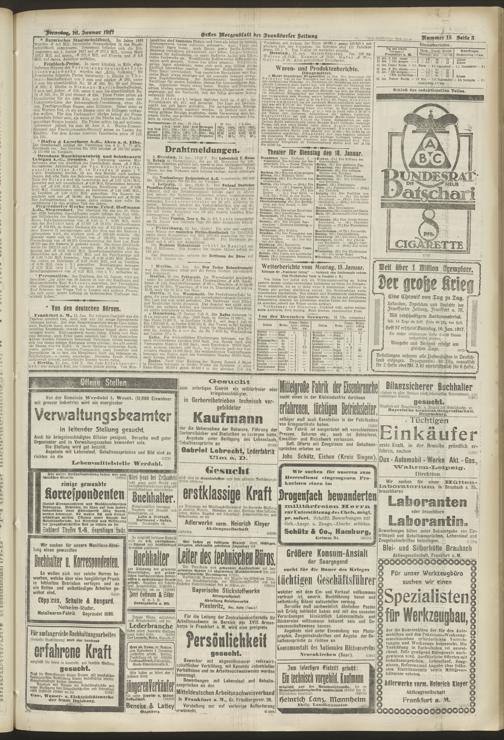 16.01.1917 = Nr. 15. Erstes Morgenblatt