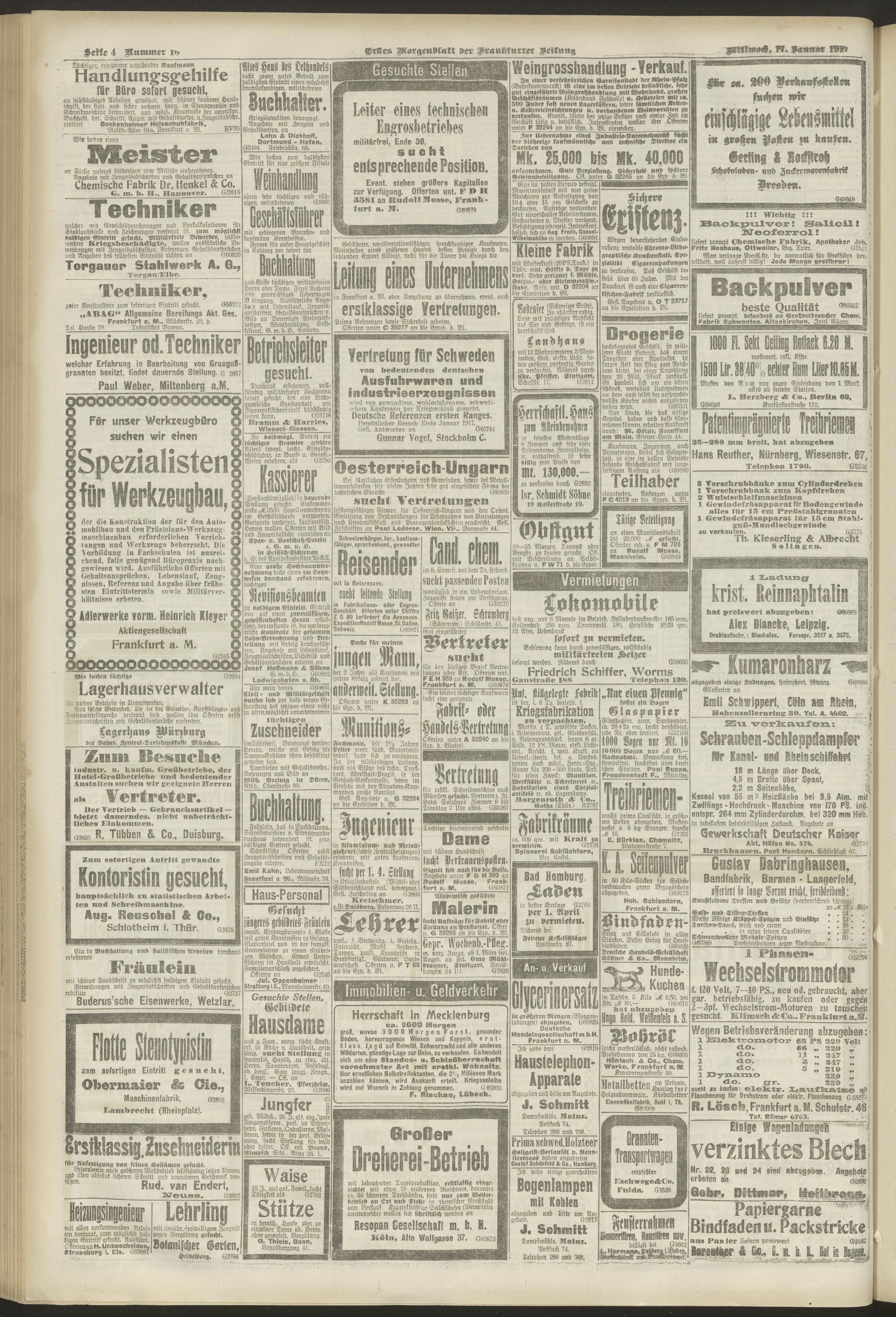 17.01.1917 = Nr. 16. Erstes Morgenblatt