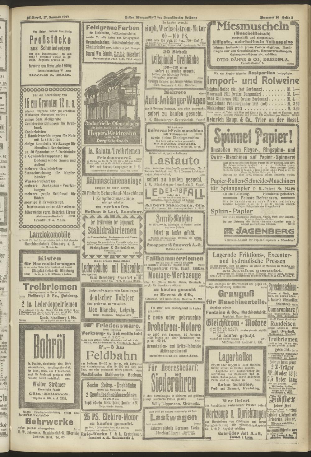 17.01.1917 = Nr. 16. Erstes Morgenblatt