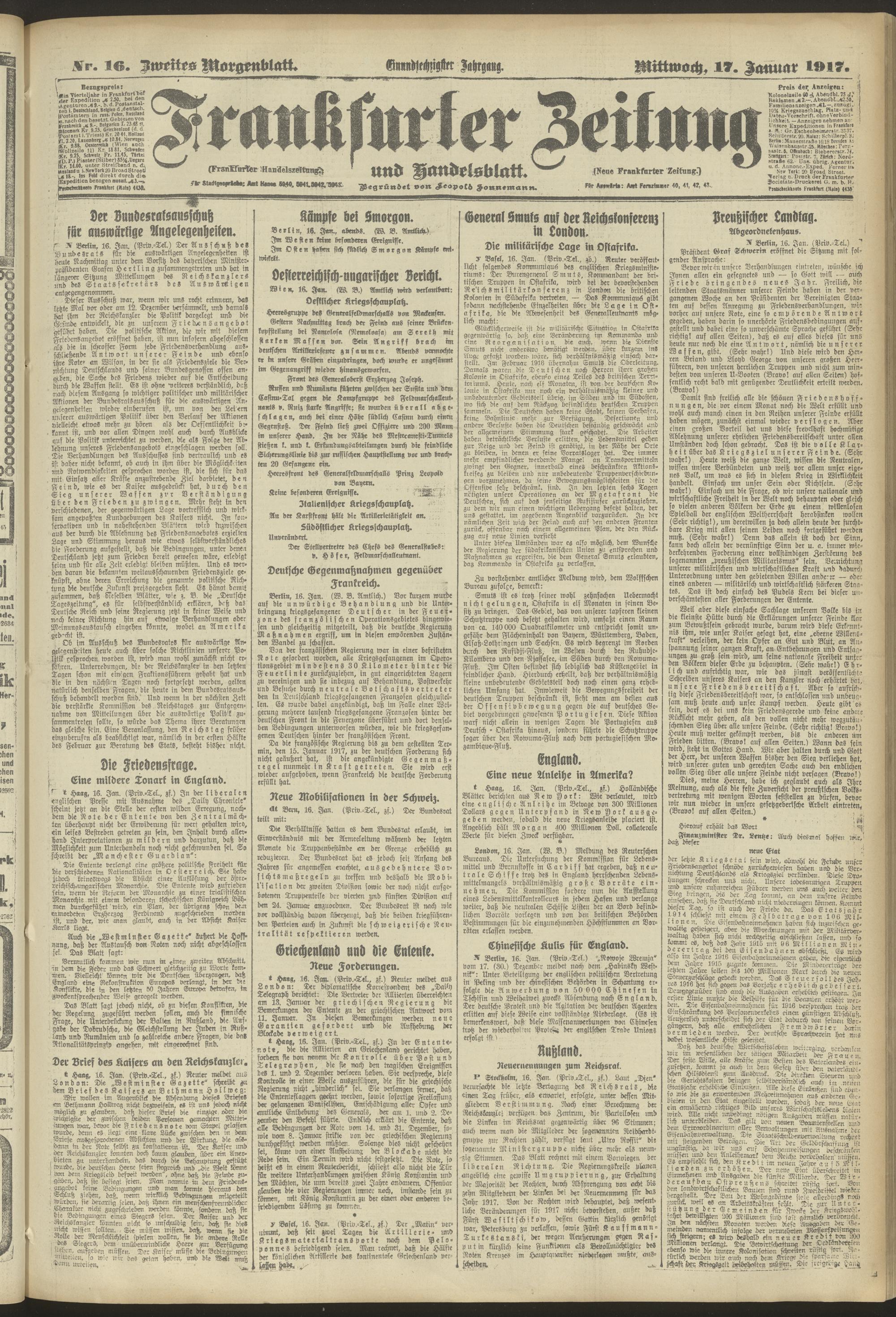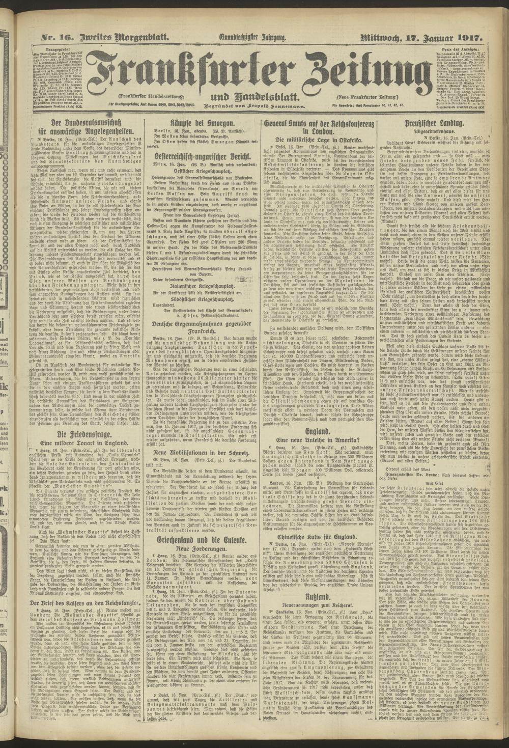 17.01.1917 = Nr. 16. Zweites Morgenblatt