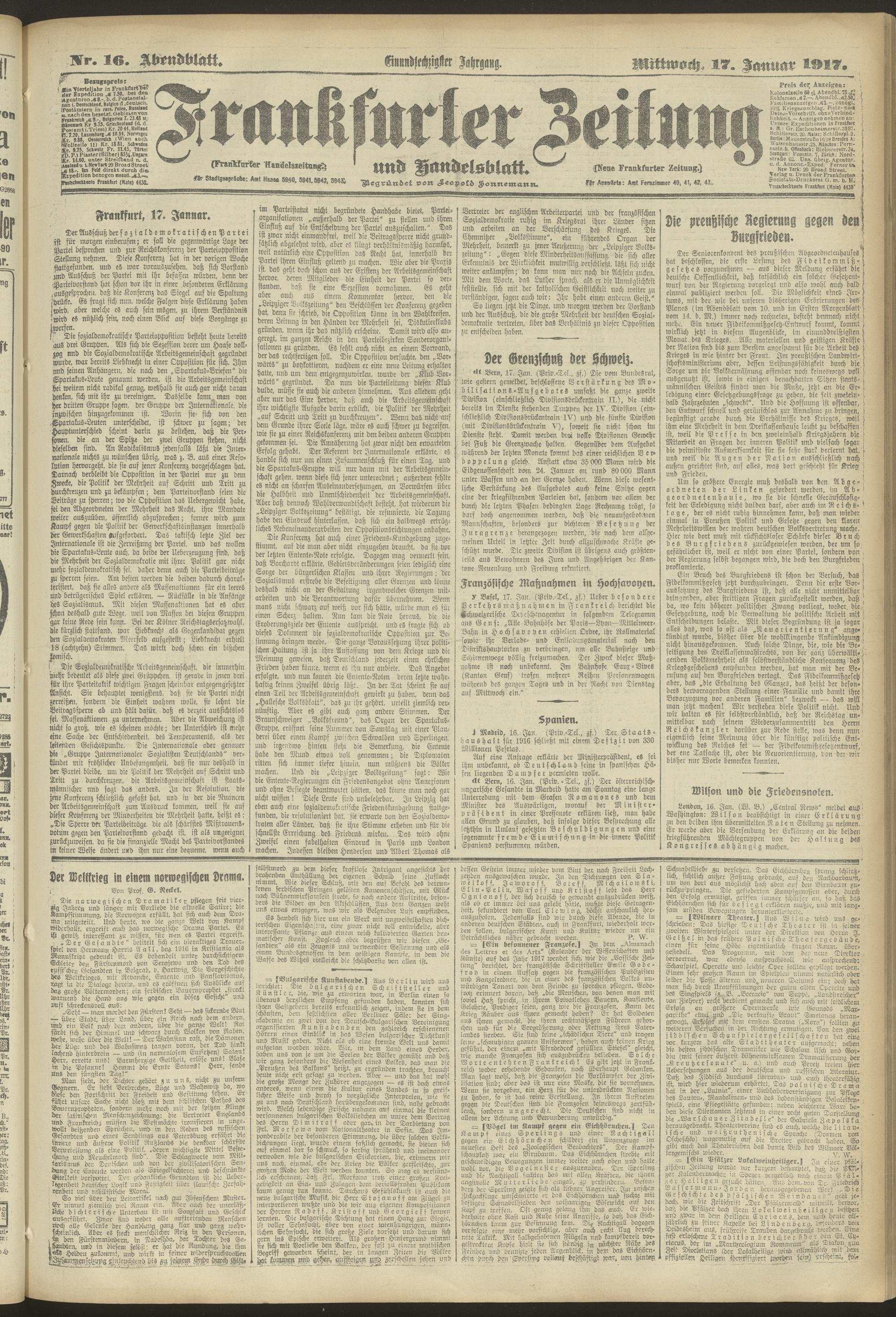 17.01.1917 = Nr. 16. Abendblatt