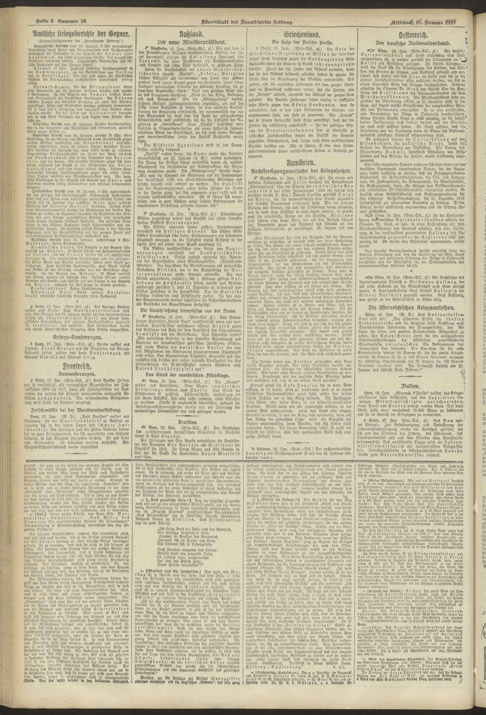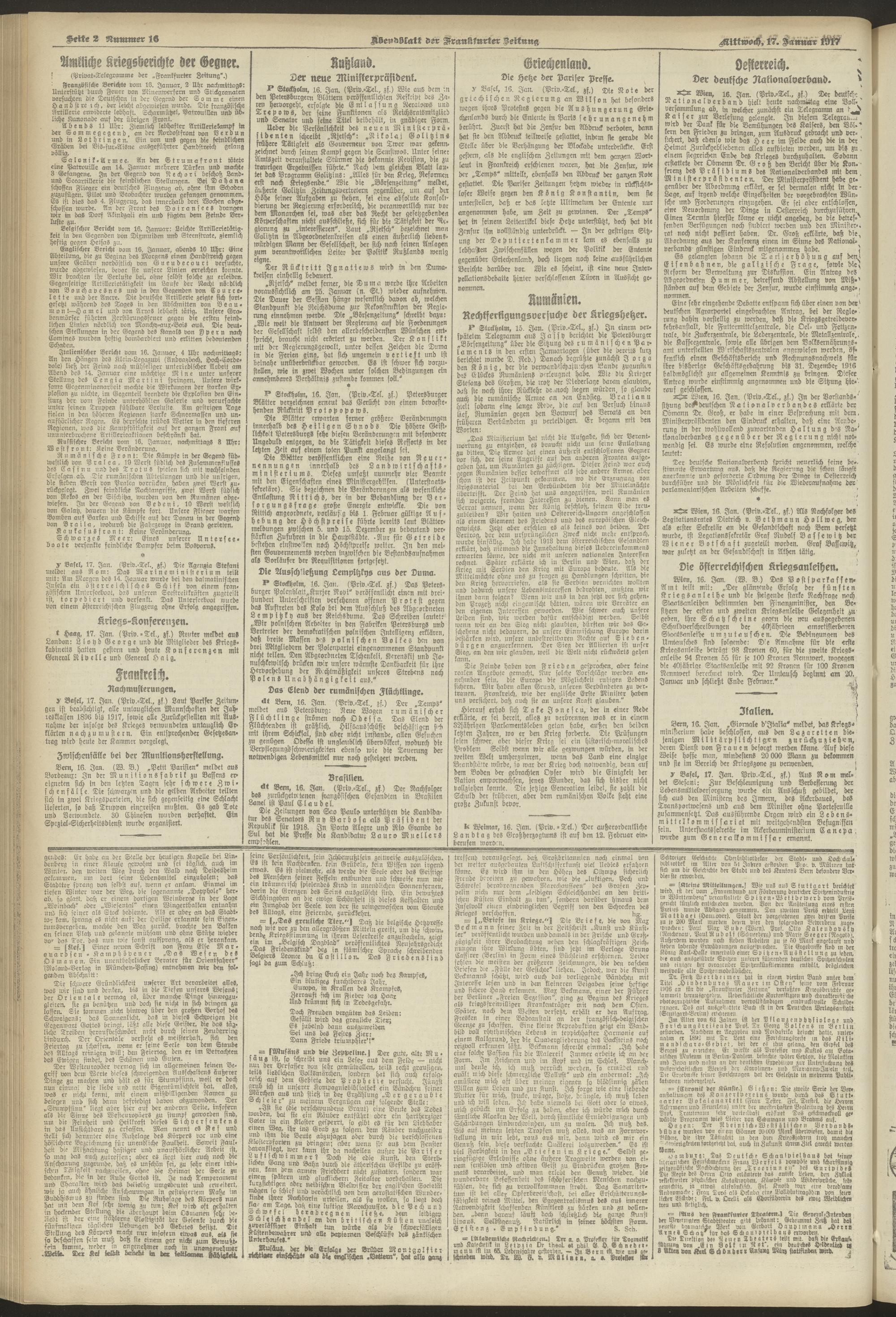 17.01.1917 = Nr. 16. Abendblatt