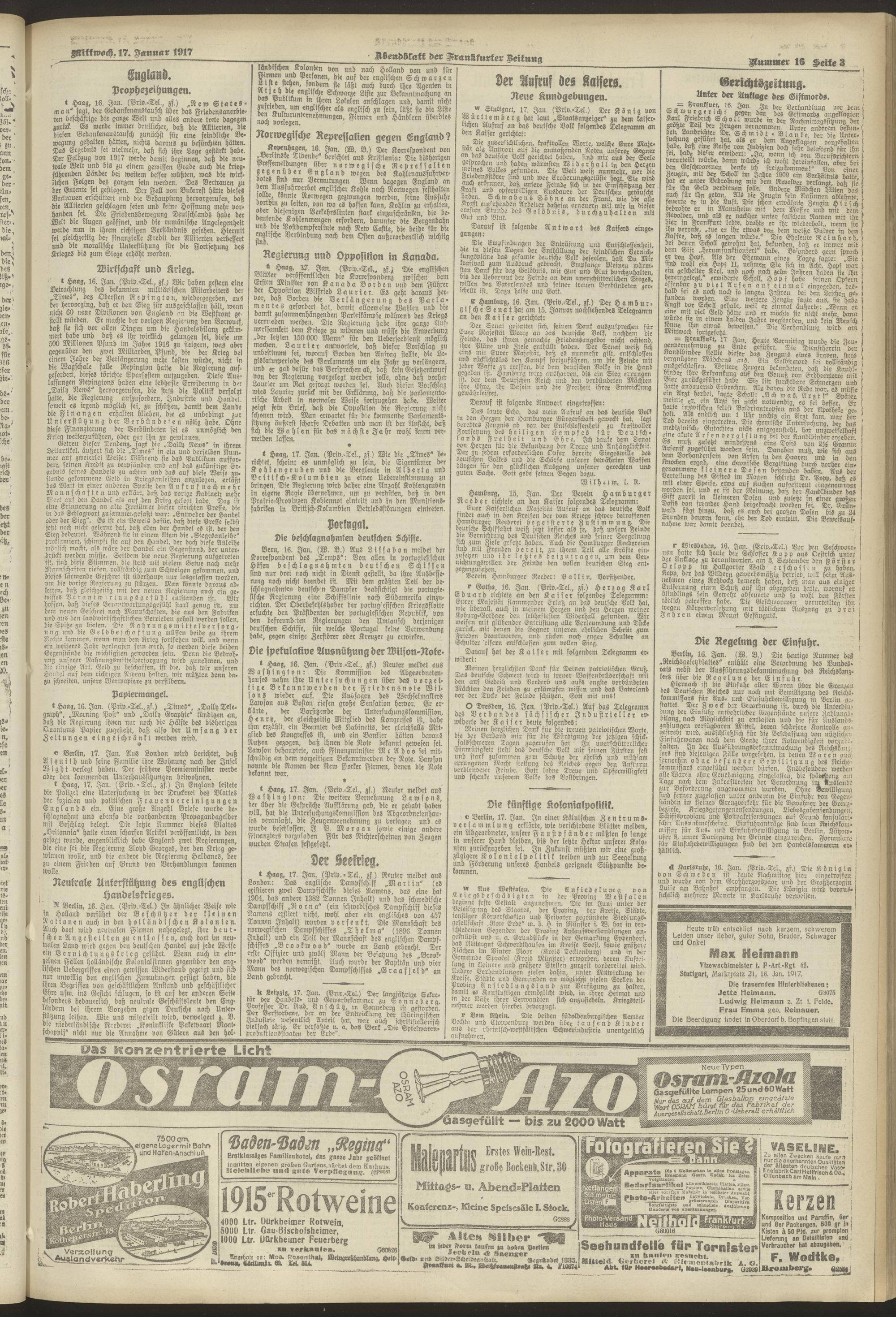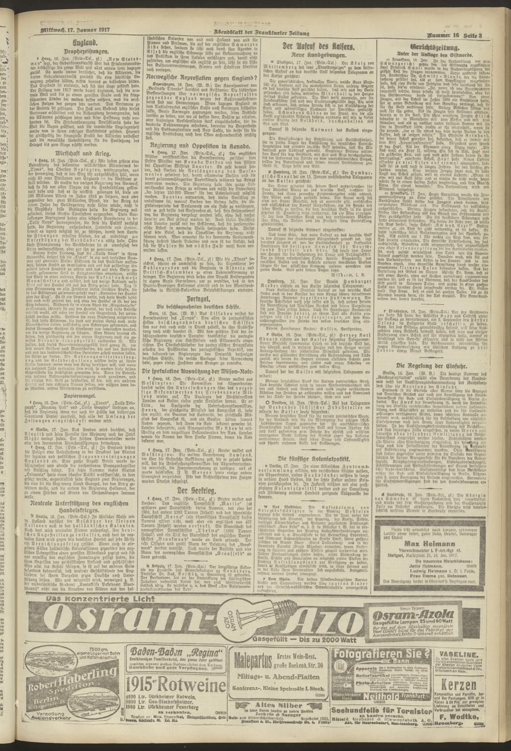 17.01.1917 = Nr. 16. Abendblatt