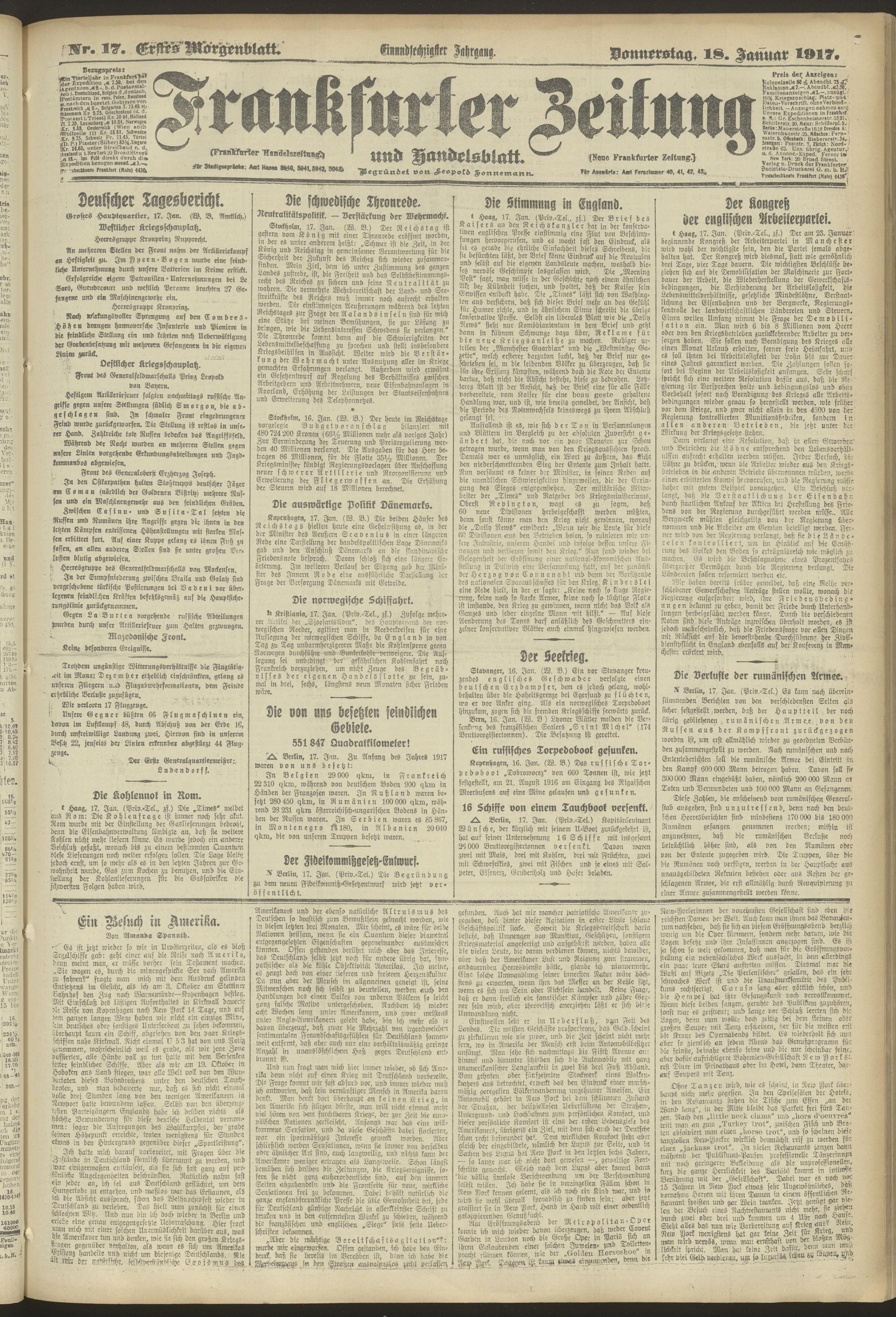 18.01.1917 = Nr. 17. Erstes Morgenblatt
