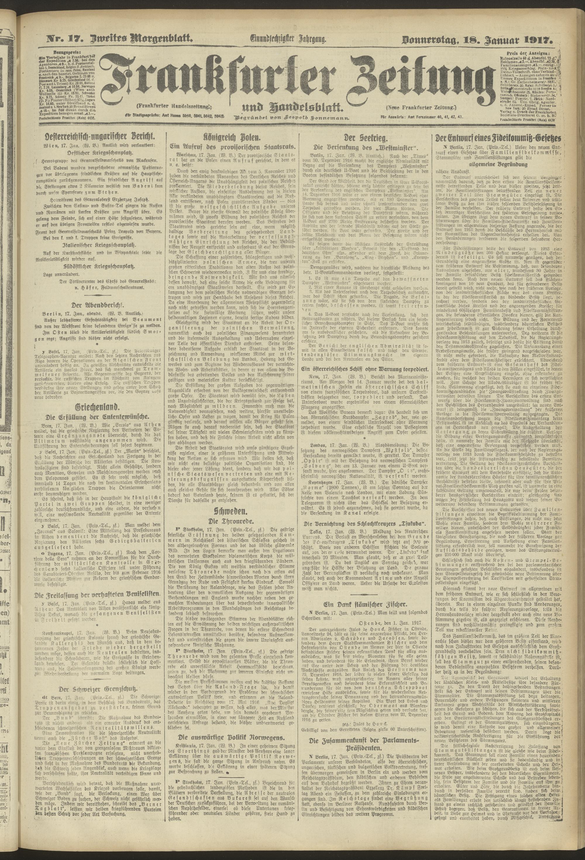 18.01.1917 = Nr. 17. Zweites Morgenblatt