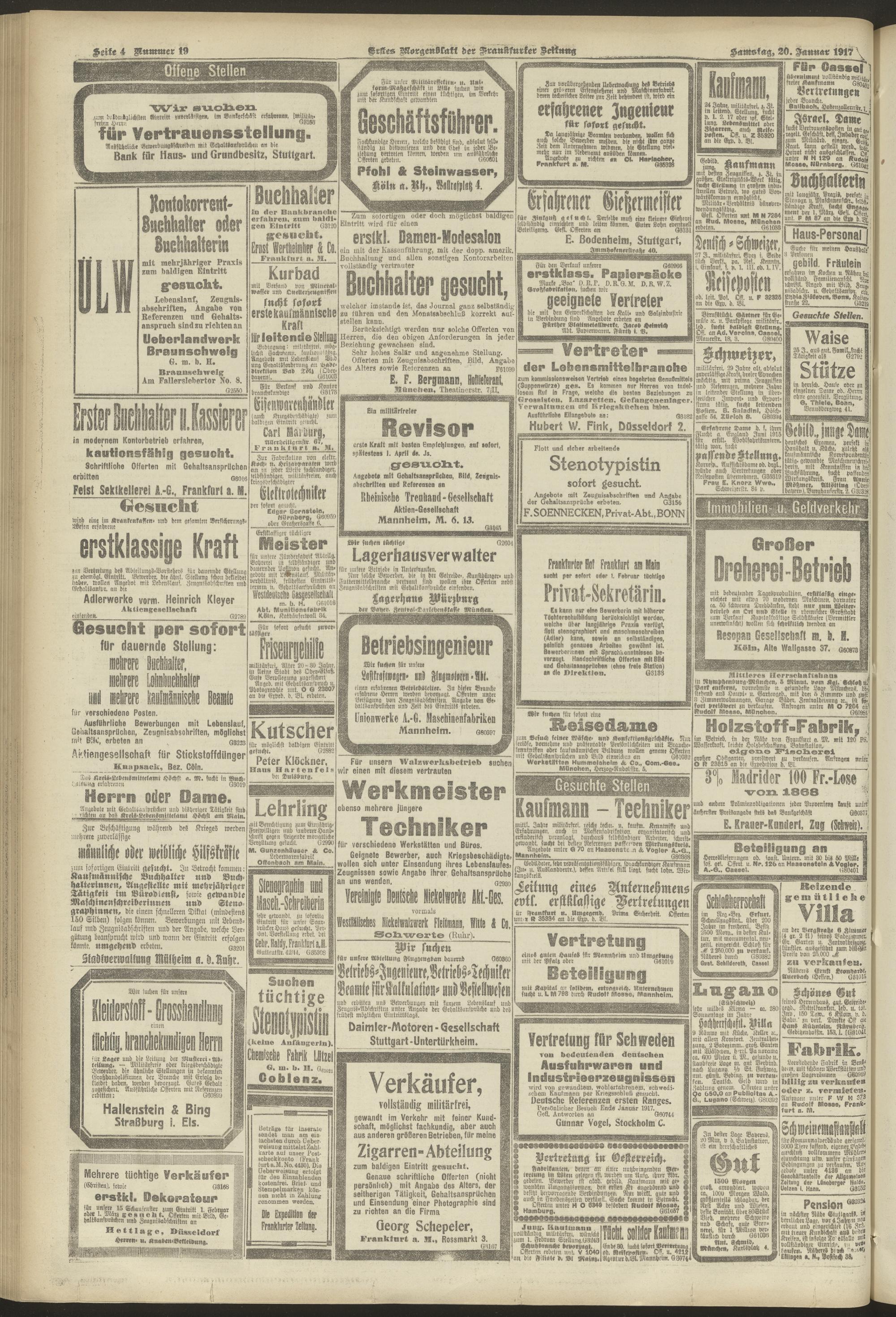 20.01.1917 = Nr. 19. Erstes Morgenblatt