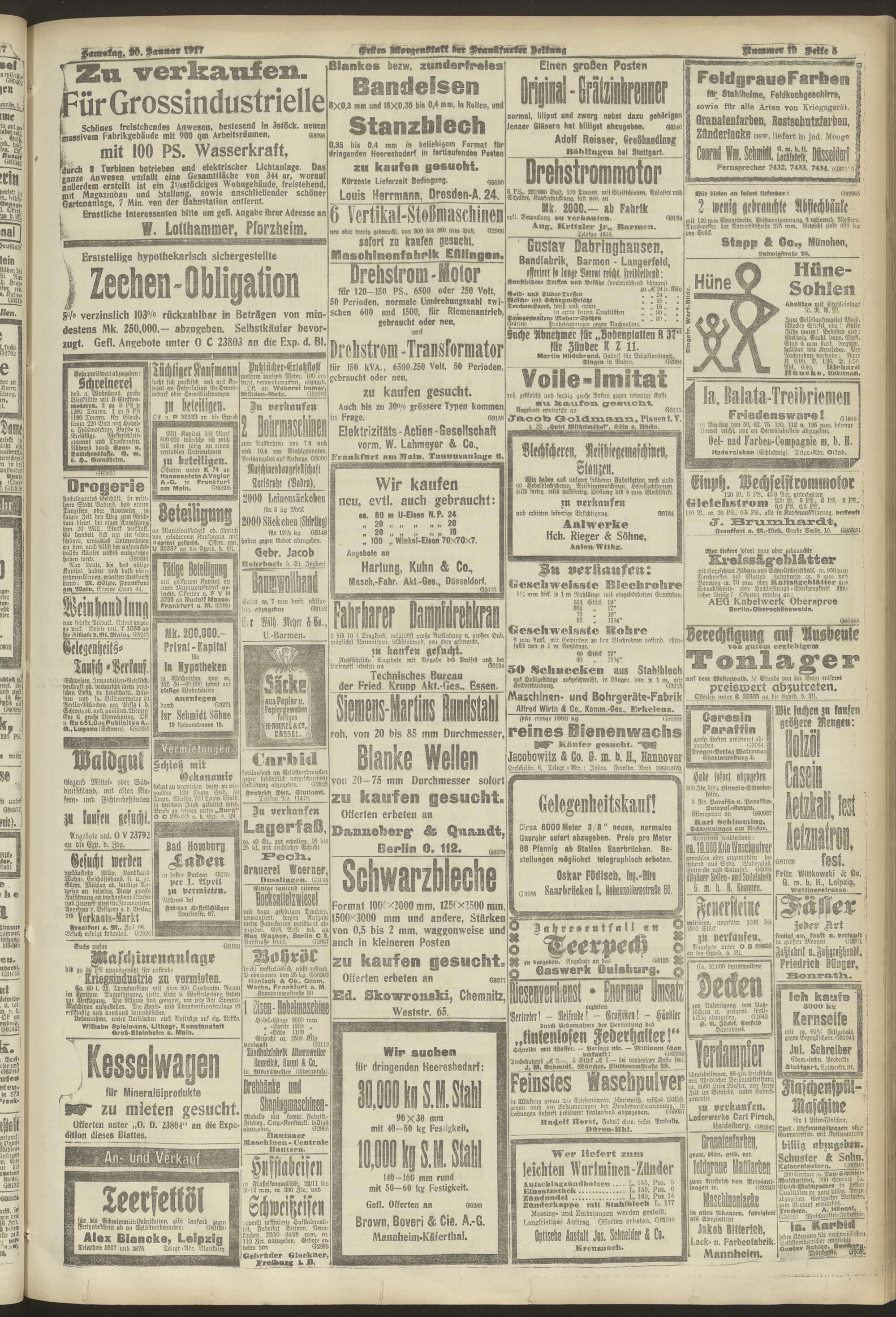 20.01.1917 = Nr. 19. Erstes Morgenblatt