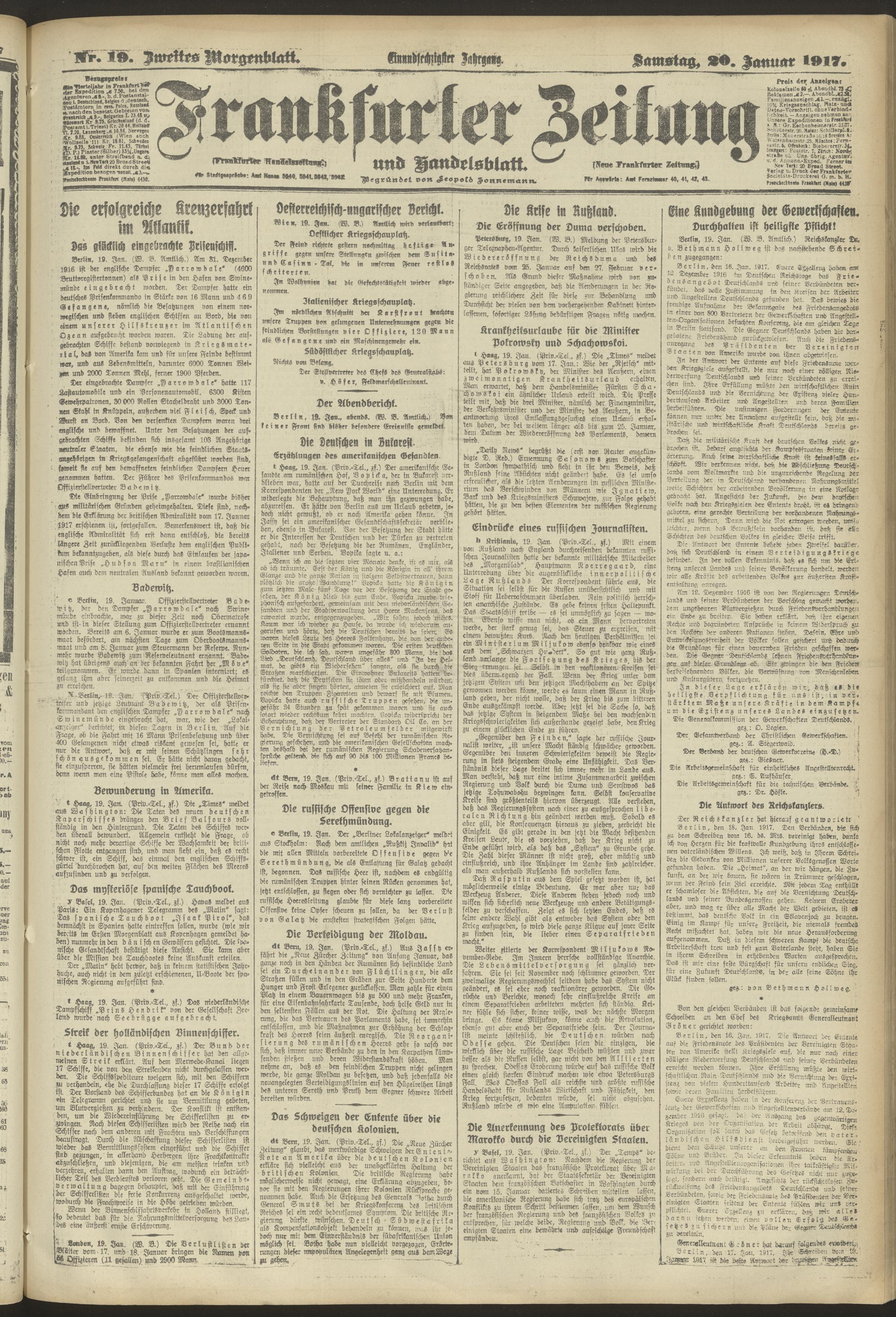 20.01.1917 = Nr. 19. Zweites Morgenblatt