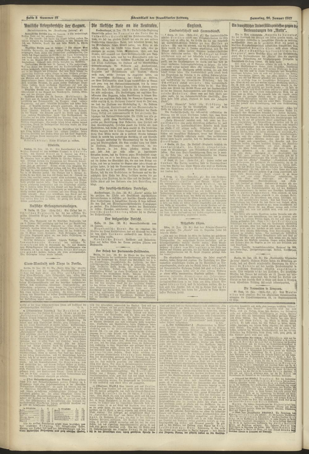 20.01.1917 = Nr. 19. Abendblatt