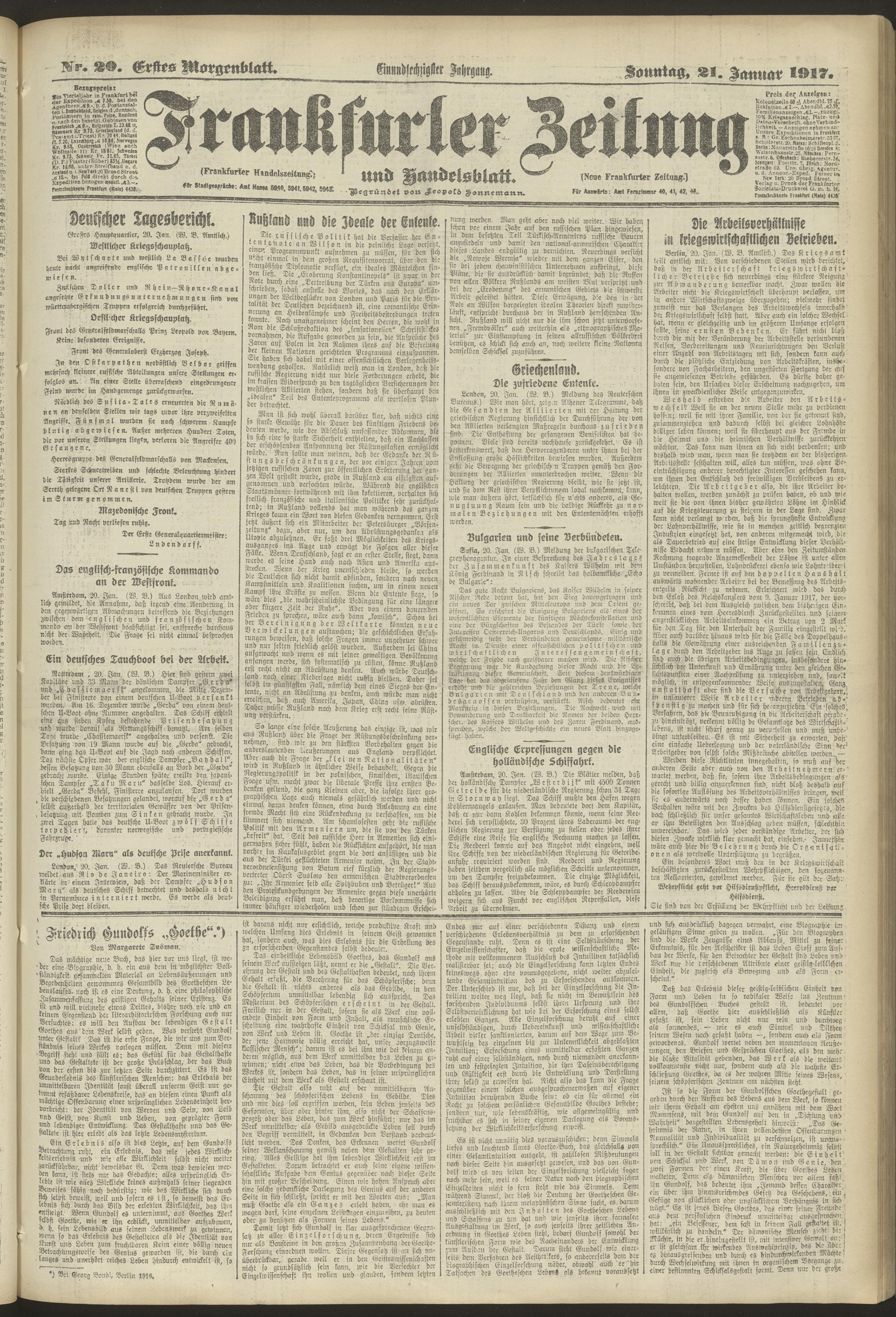 21.01.1917 = Nr. 20. Erstes Morgenblatt