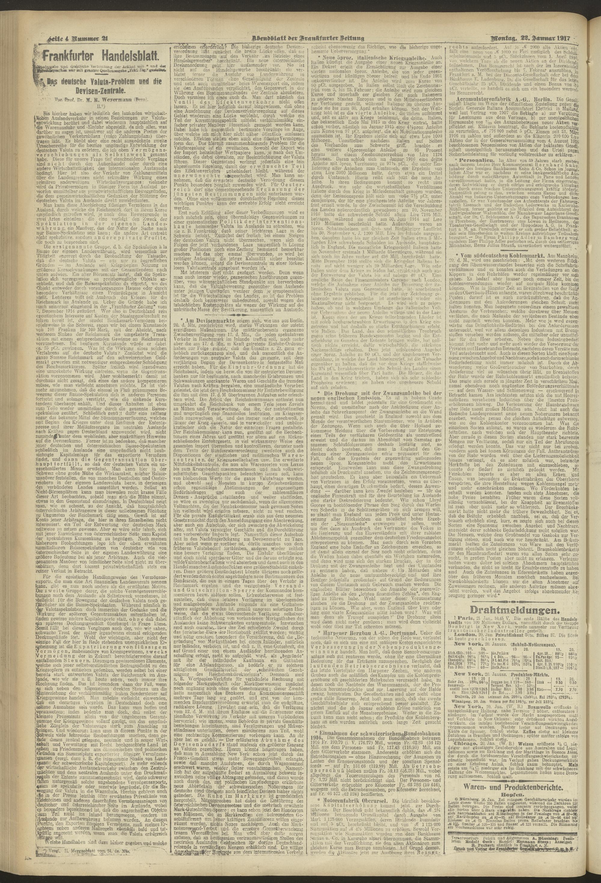 22.01.1917 = Nr. 21. Abendblatt