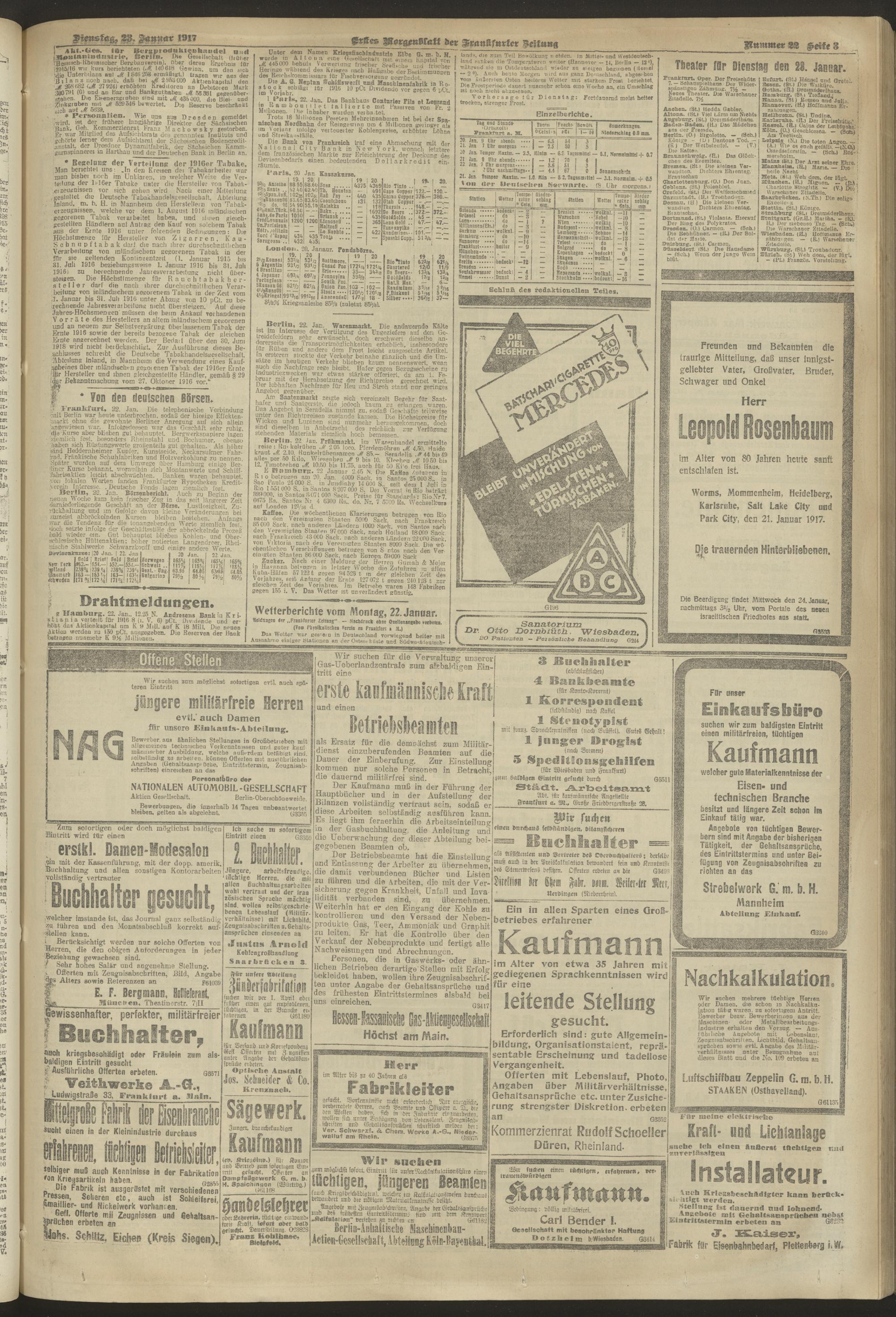 23.01.1917 = Nr. 22. Erstes Morgenblatt