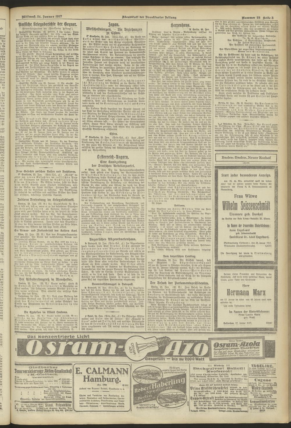 24.01.1917 = Nr. 23. Abendblatt