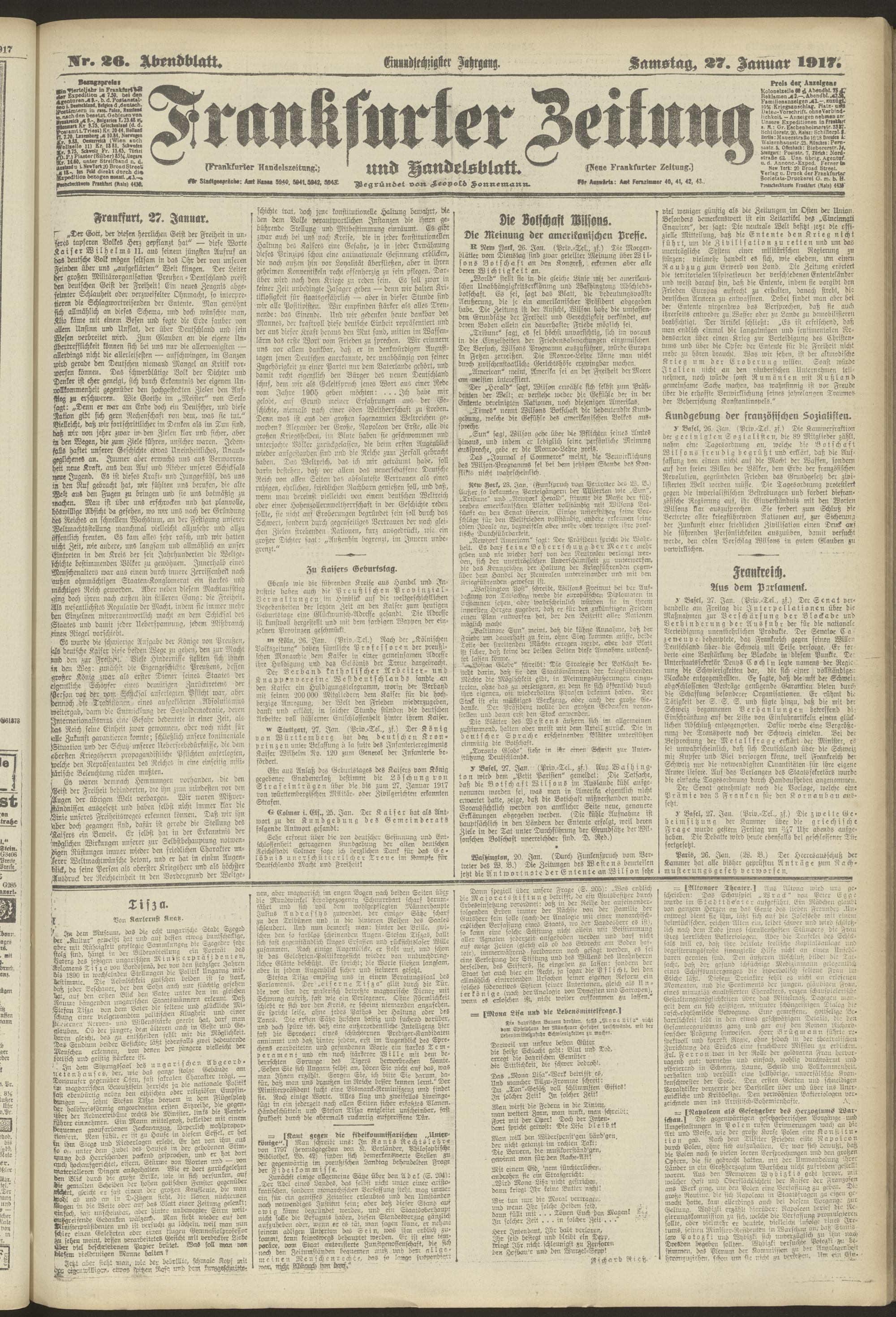 27.01.1917 = Nr. 26. Abendblatt
