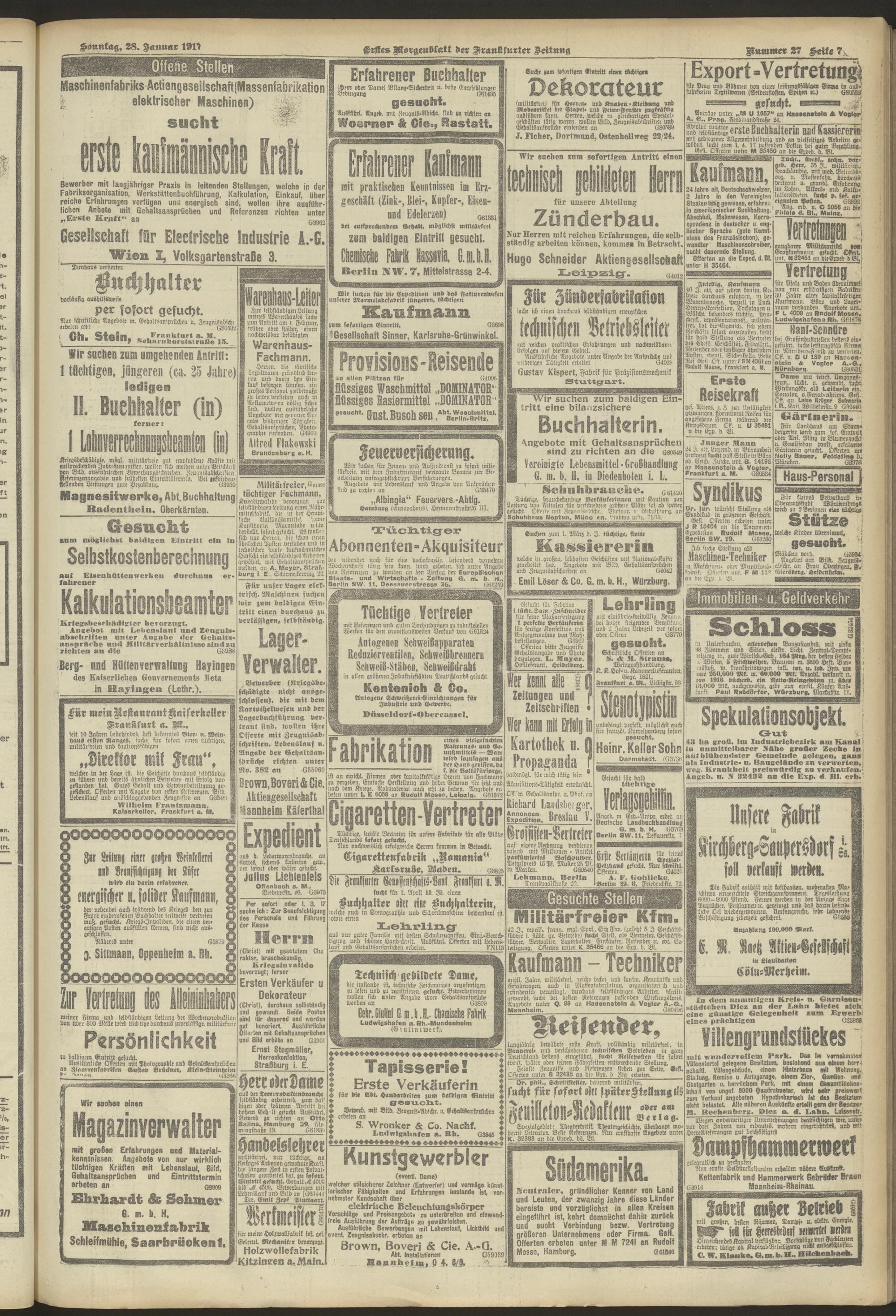 28.01.1917 = Nr. 27. Erstes Morgenblatt