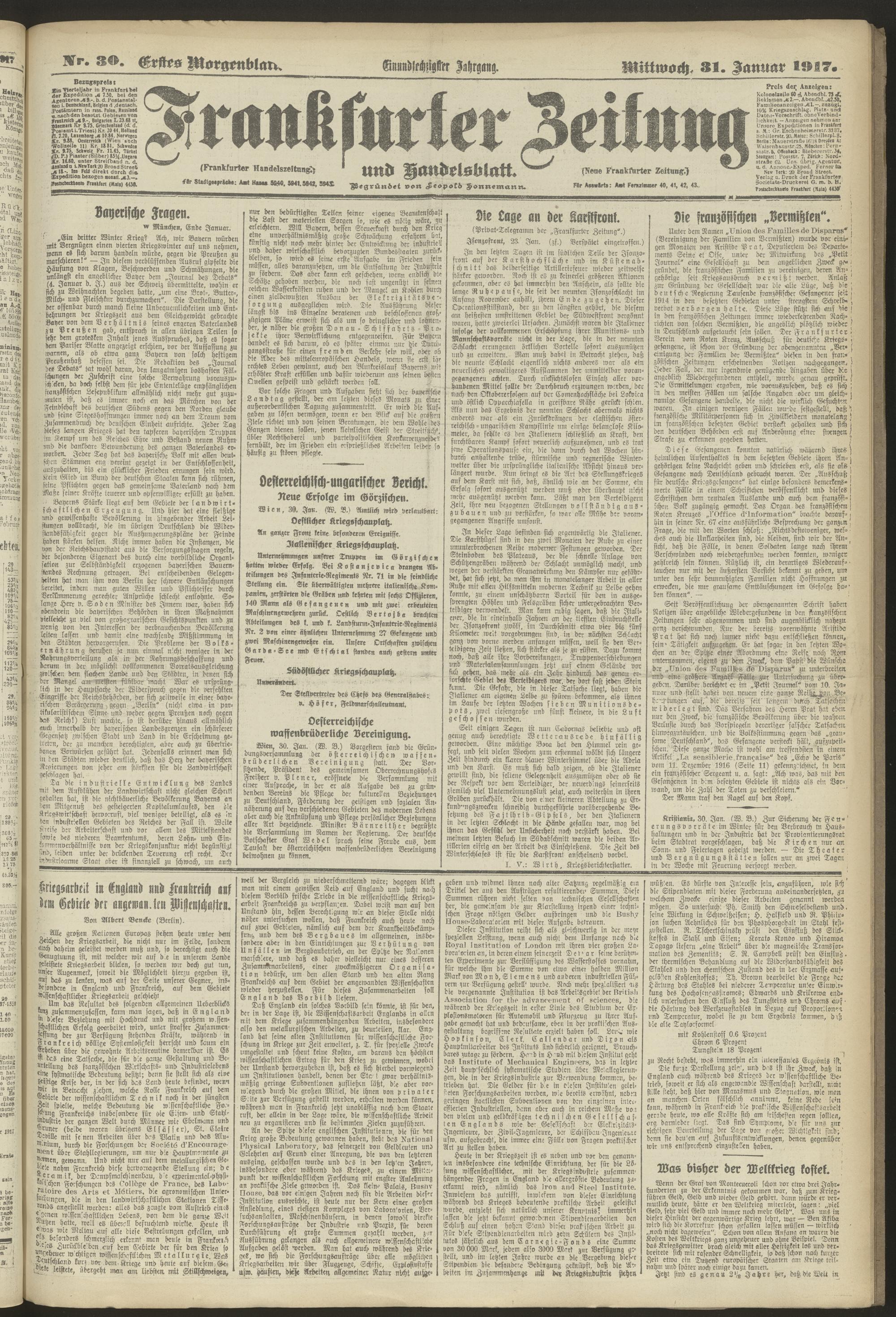 31.01.1917 = Nr. 30. Erstes Morgenblatt