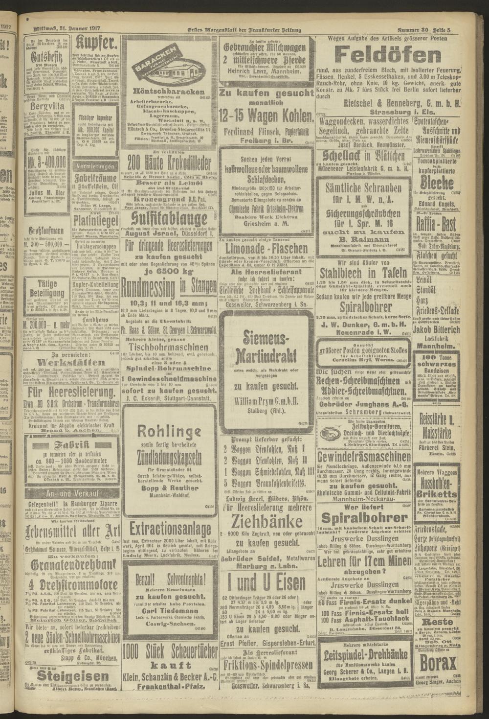 31.01.1917 = Nr. 30. Erstes Morgenblatt