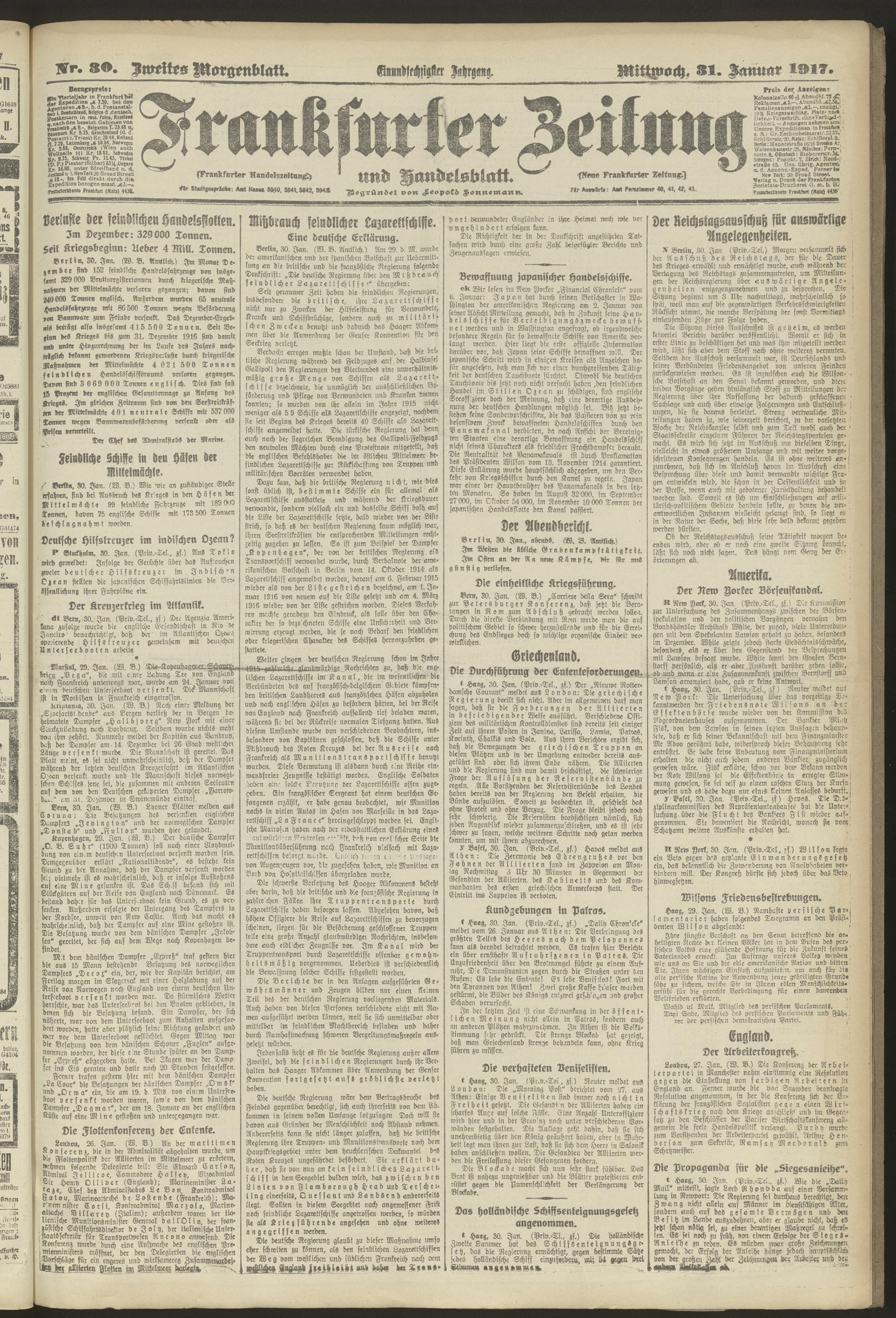 31.01.1917 = Nr. 30. Zweites Morgenblatt