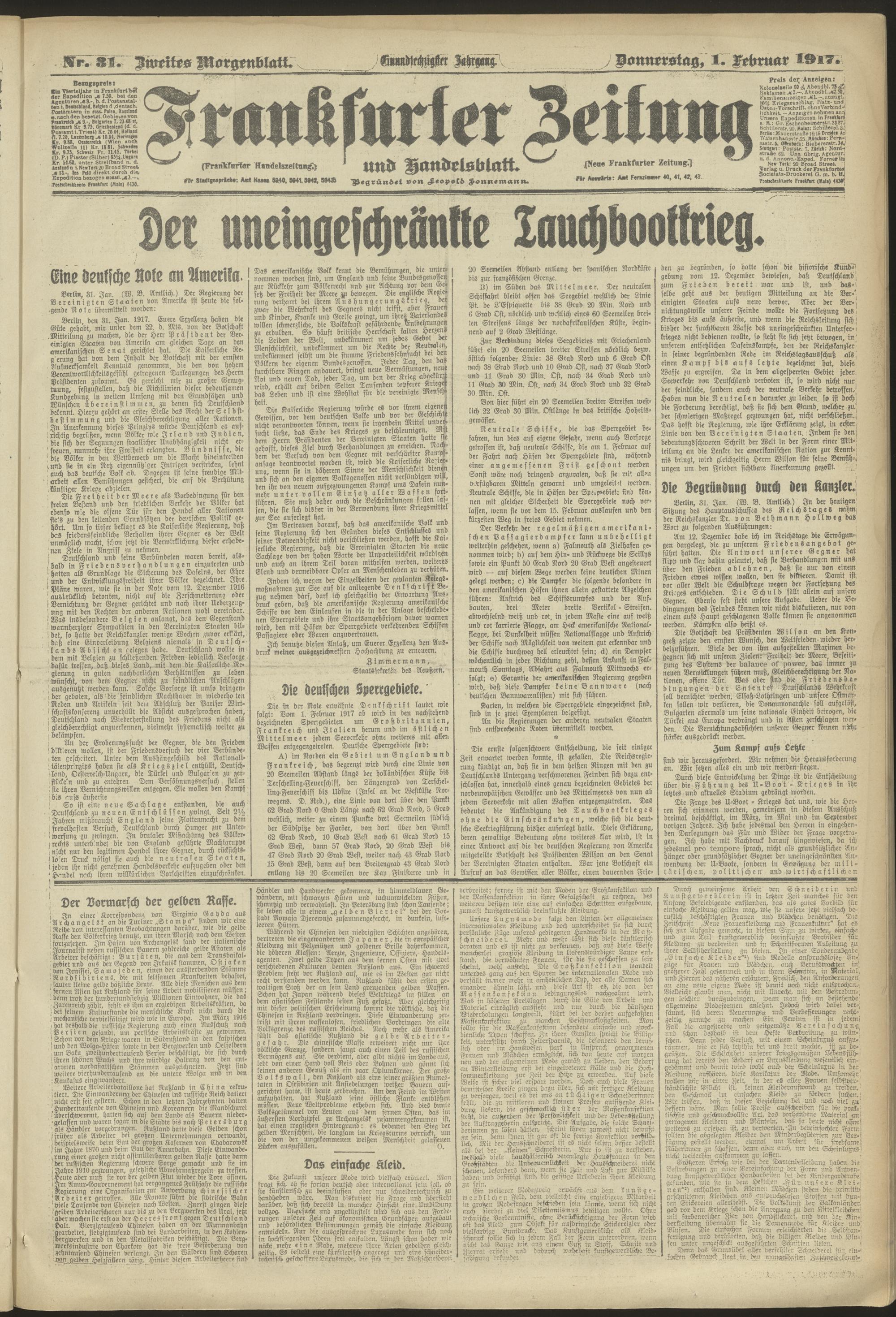 01.02.1917 = Nr. 31. Zweites Morgenblatt