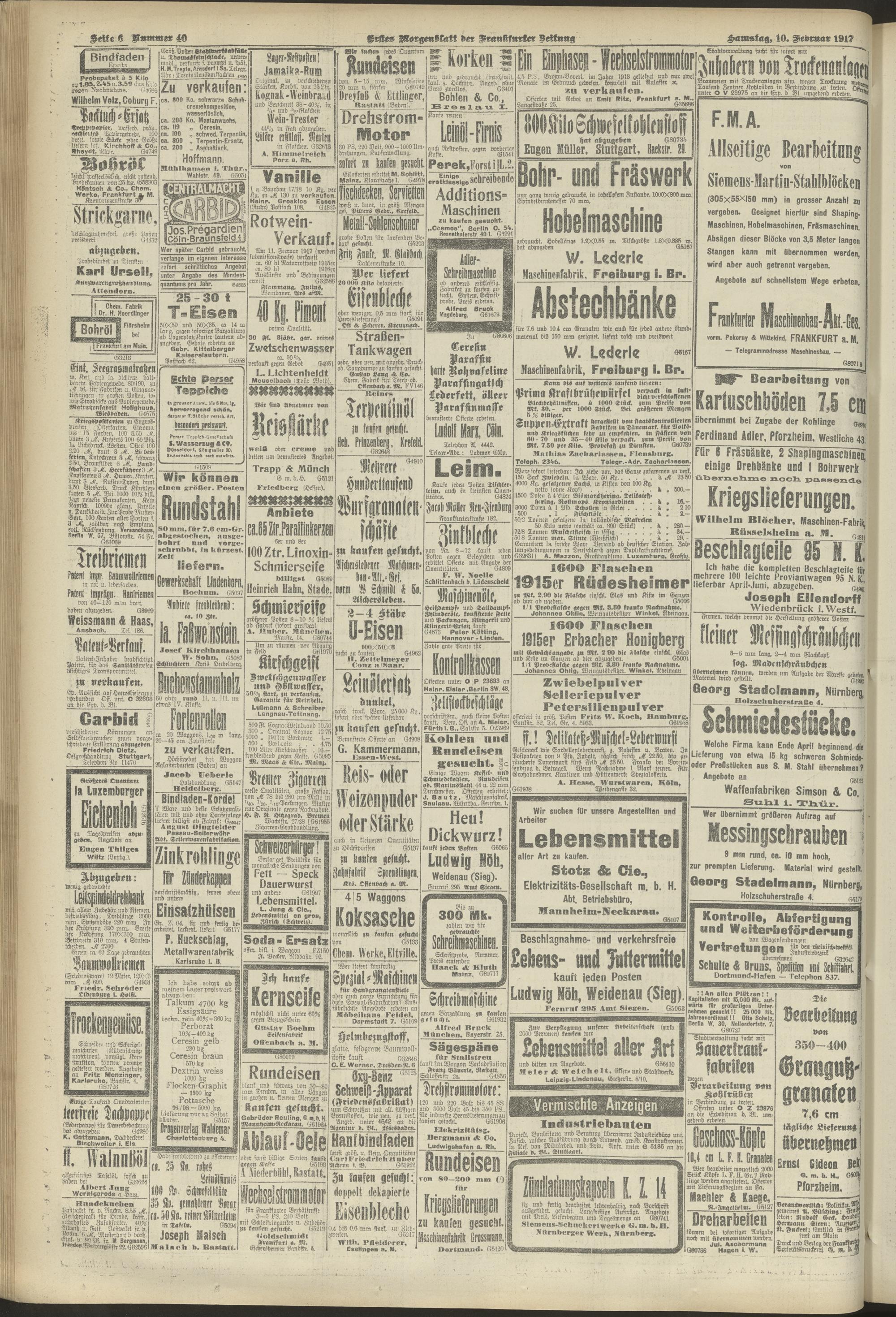 10.02.1917 = Nr. 40. Erstes Morgenblatt