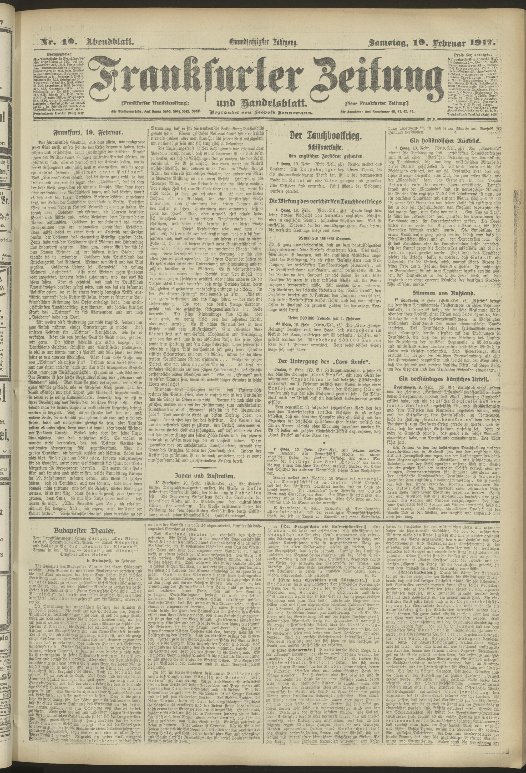 10.02.1917 = Nr. 40. Abendblatt