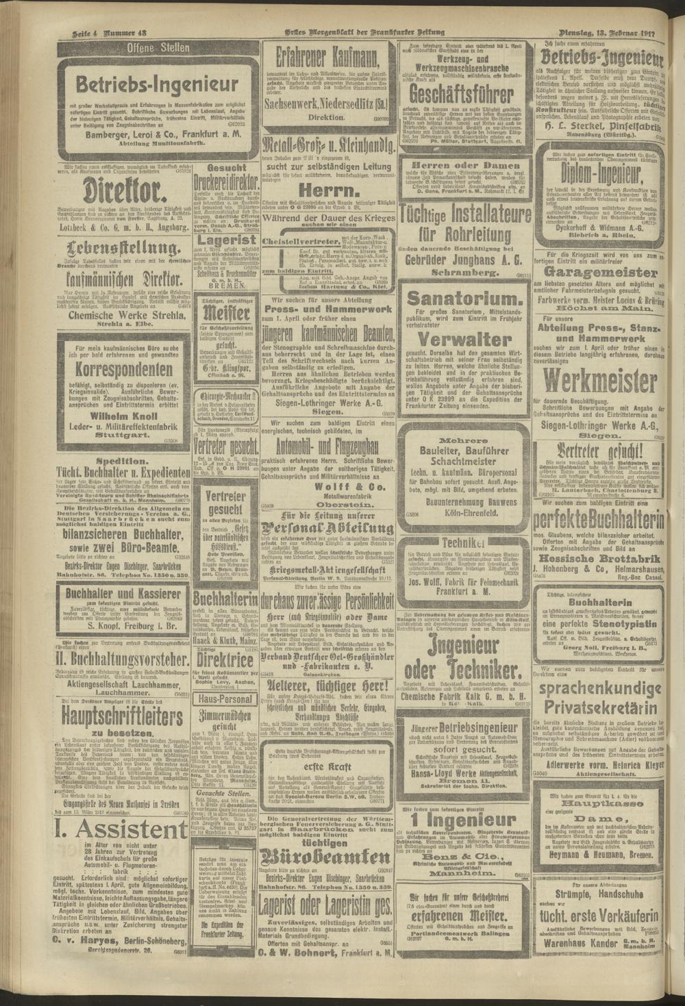13.02.1917 = Nr. 43. Erstes Morgenblatt