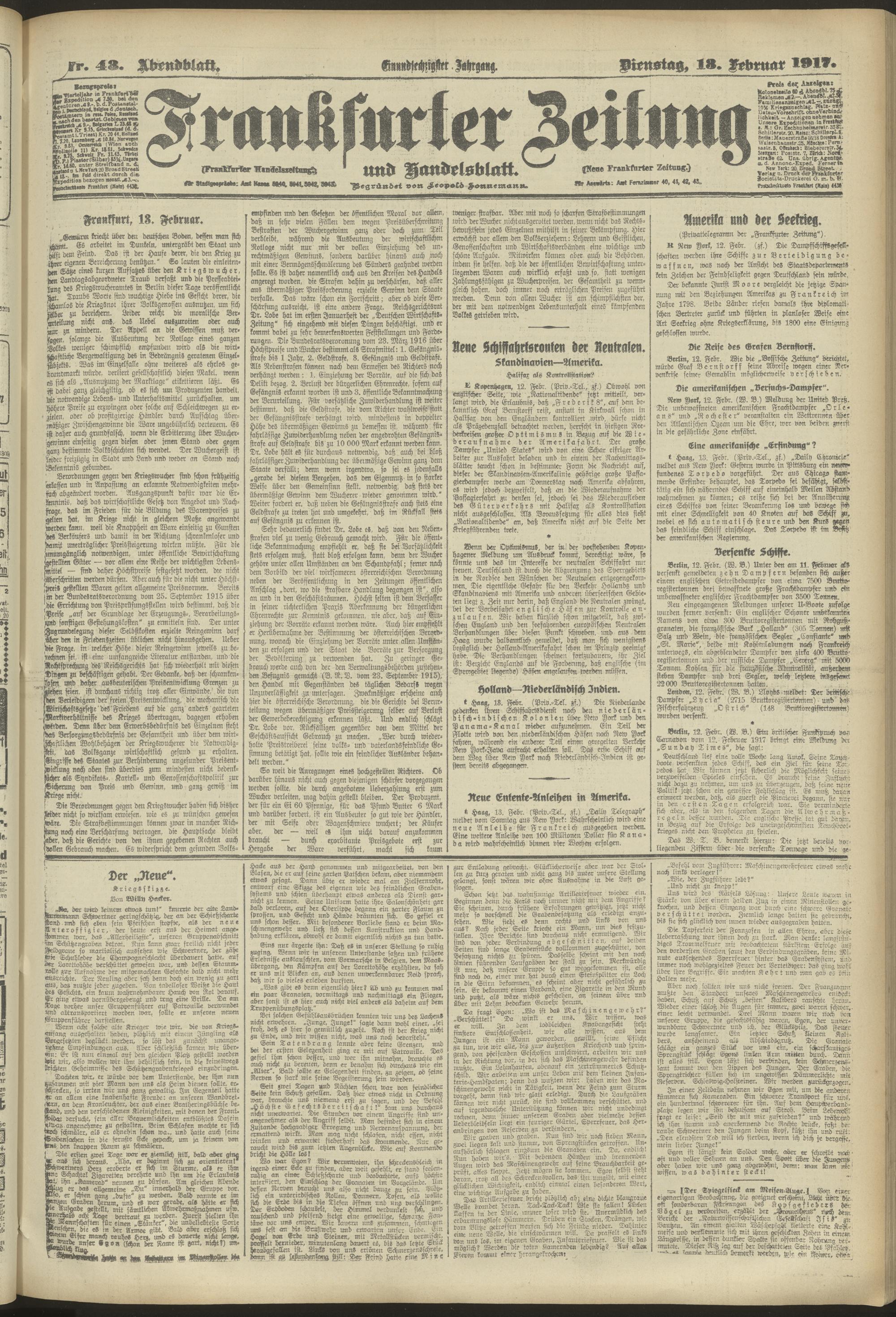 13.02.1917 = Nr. 43. Abendblatt