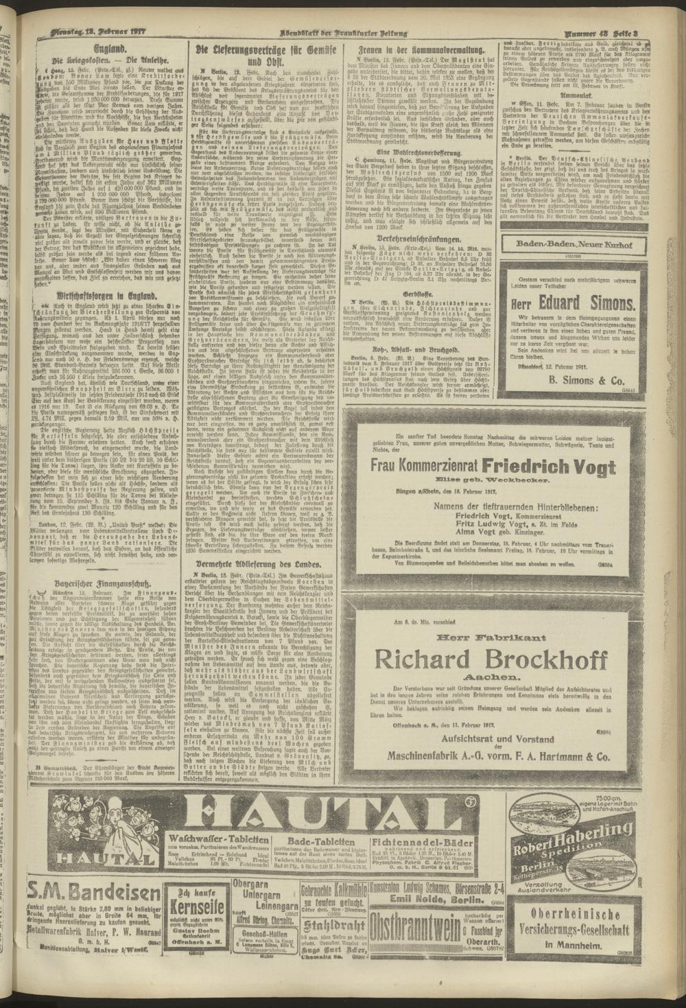 13.02.1917 = Nr. 43. Abendblatt