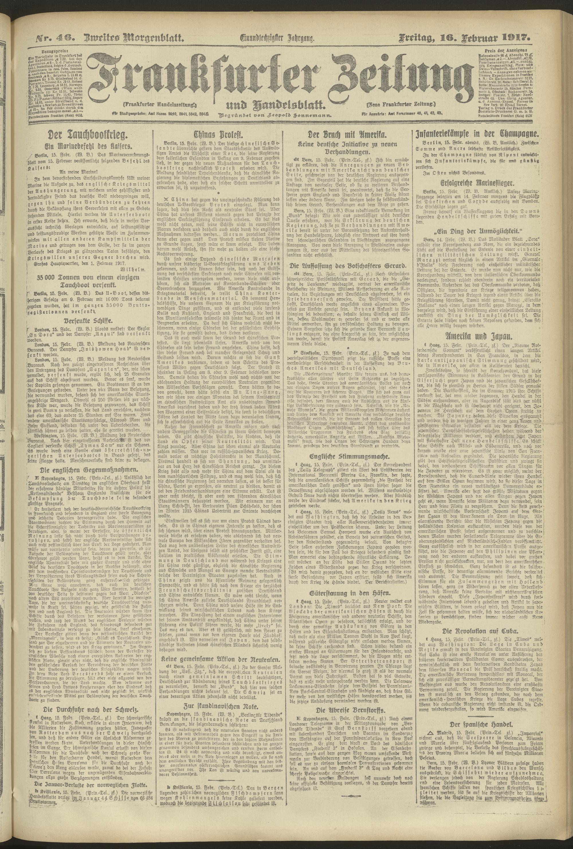 16.02.1917 = Nr. 46. Zweites Morgenblatt