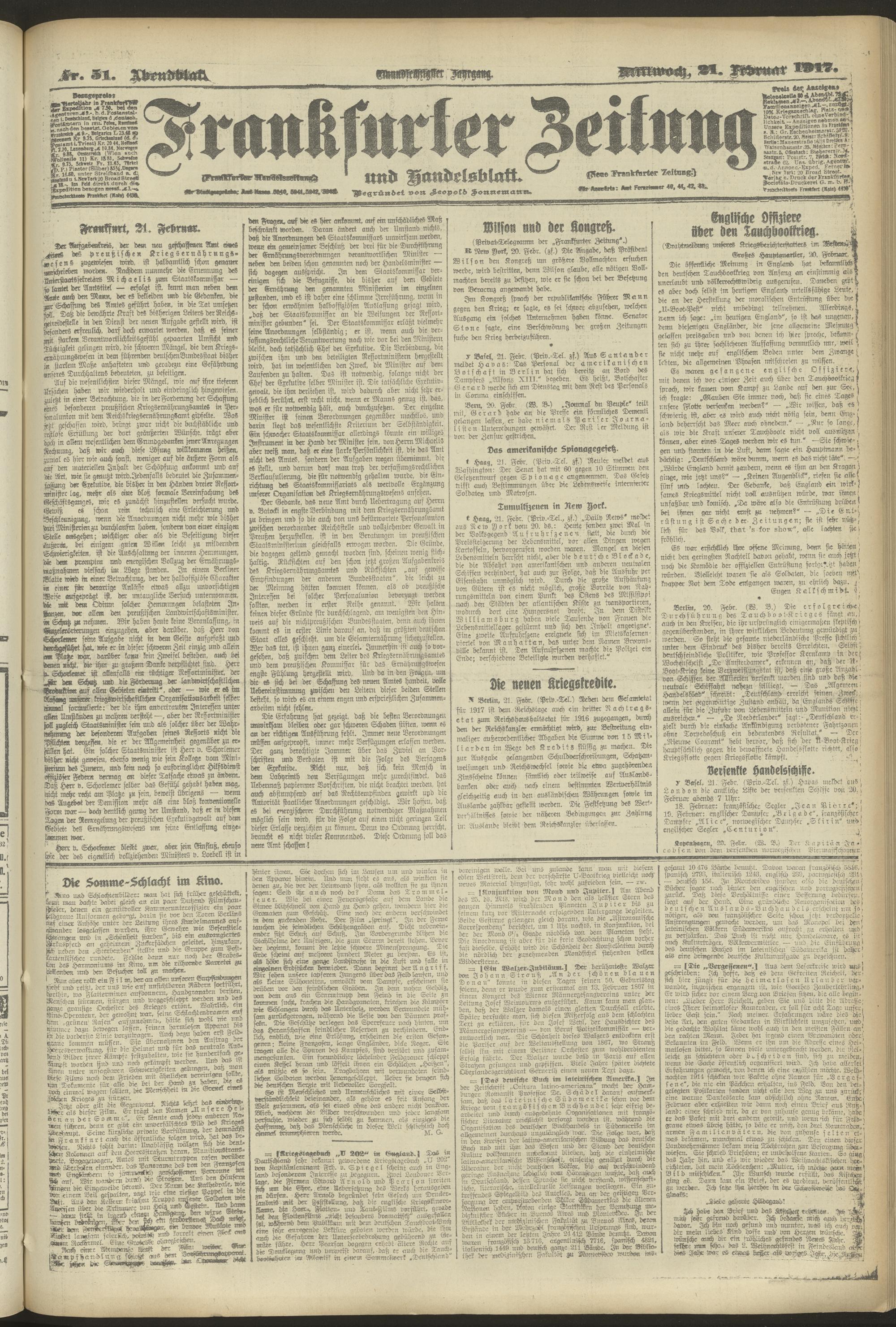 21.02.1917 = Nr. 51. Abendblatt