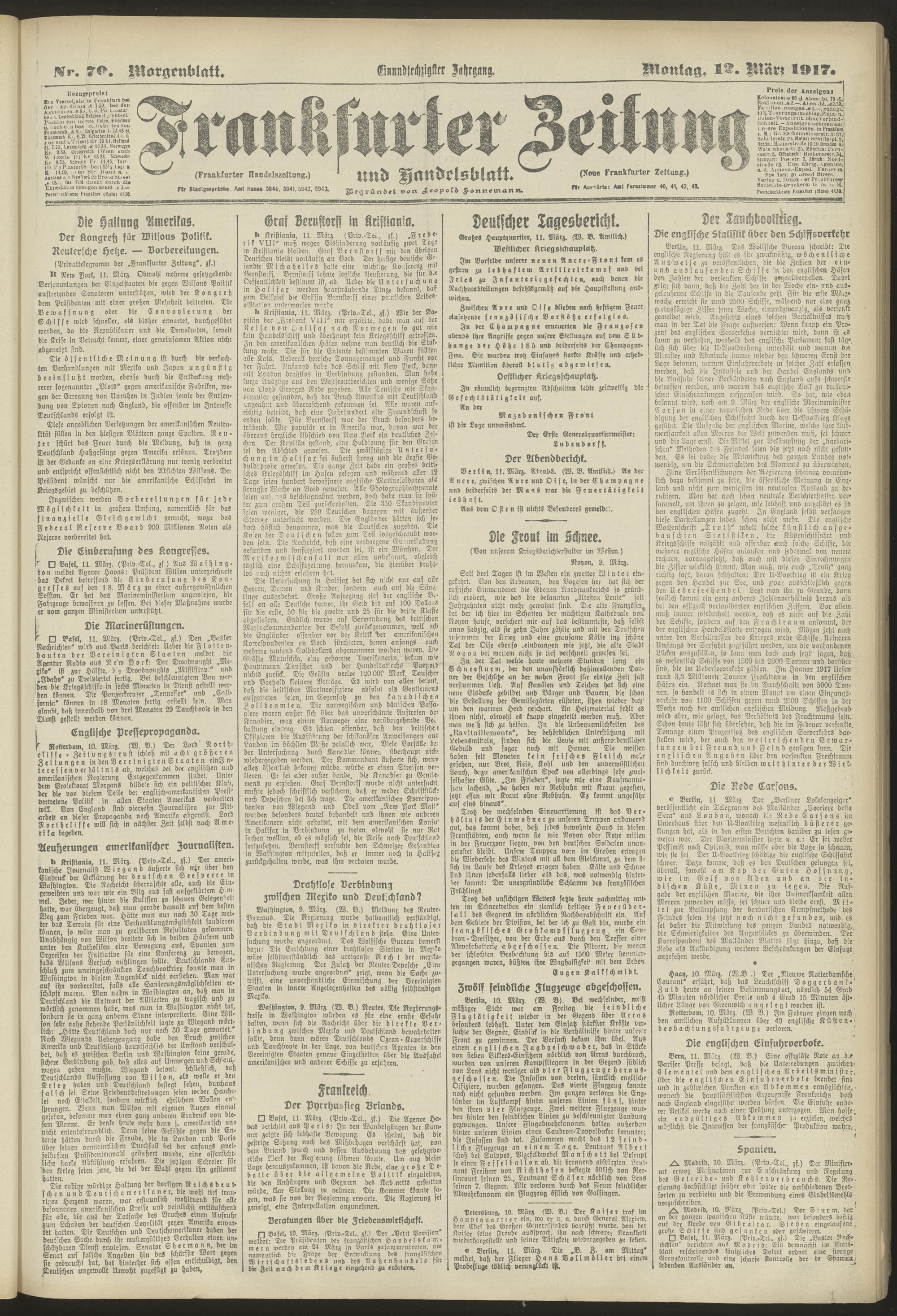 12.03.1917 = Nr. 70. Morgenblatt