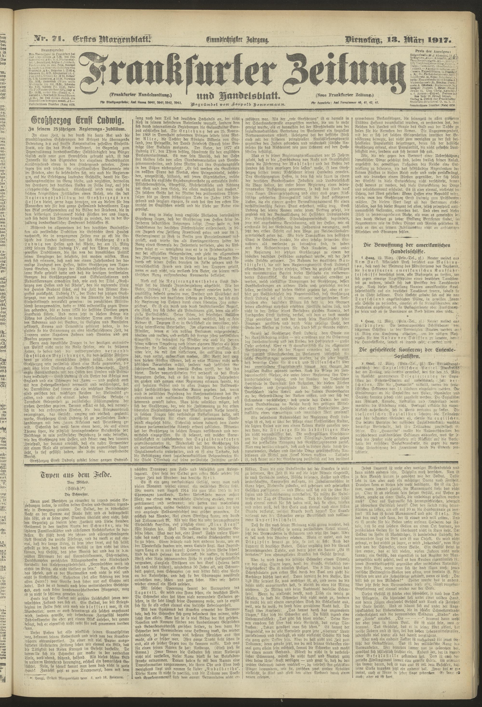 13.03.1917 = Nr. 71. Erstes Morgenblatt