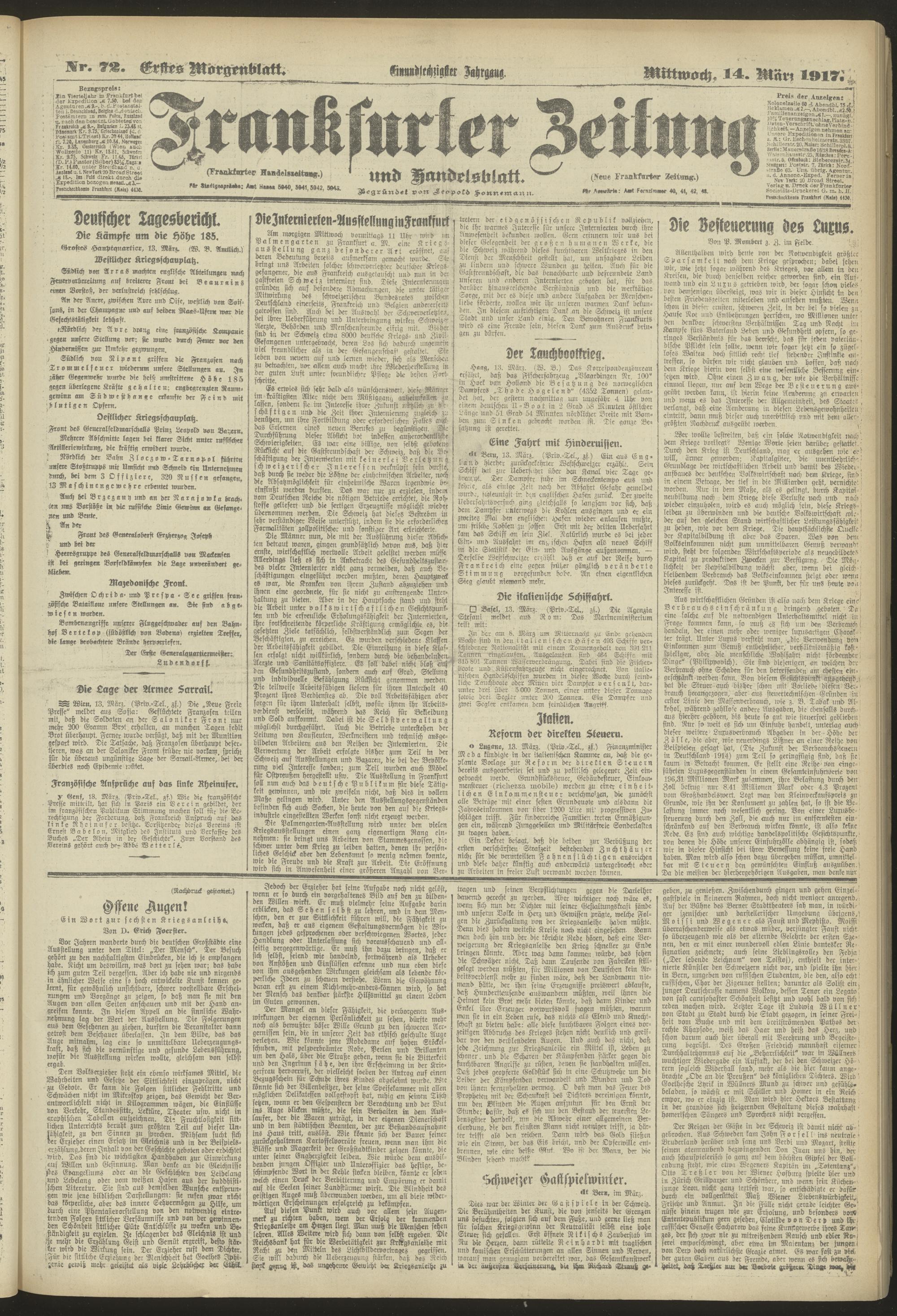 14.03.1917 = Nr. 72. Erstes Morgenblatt
