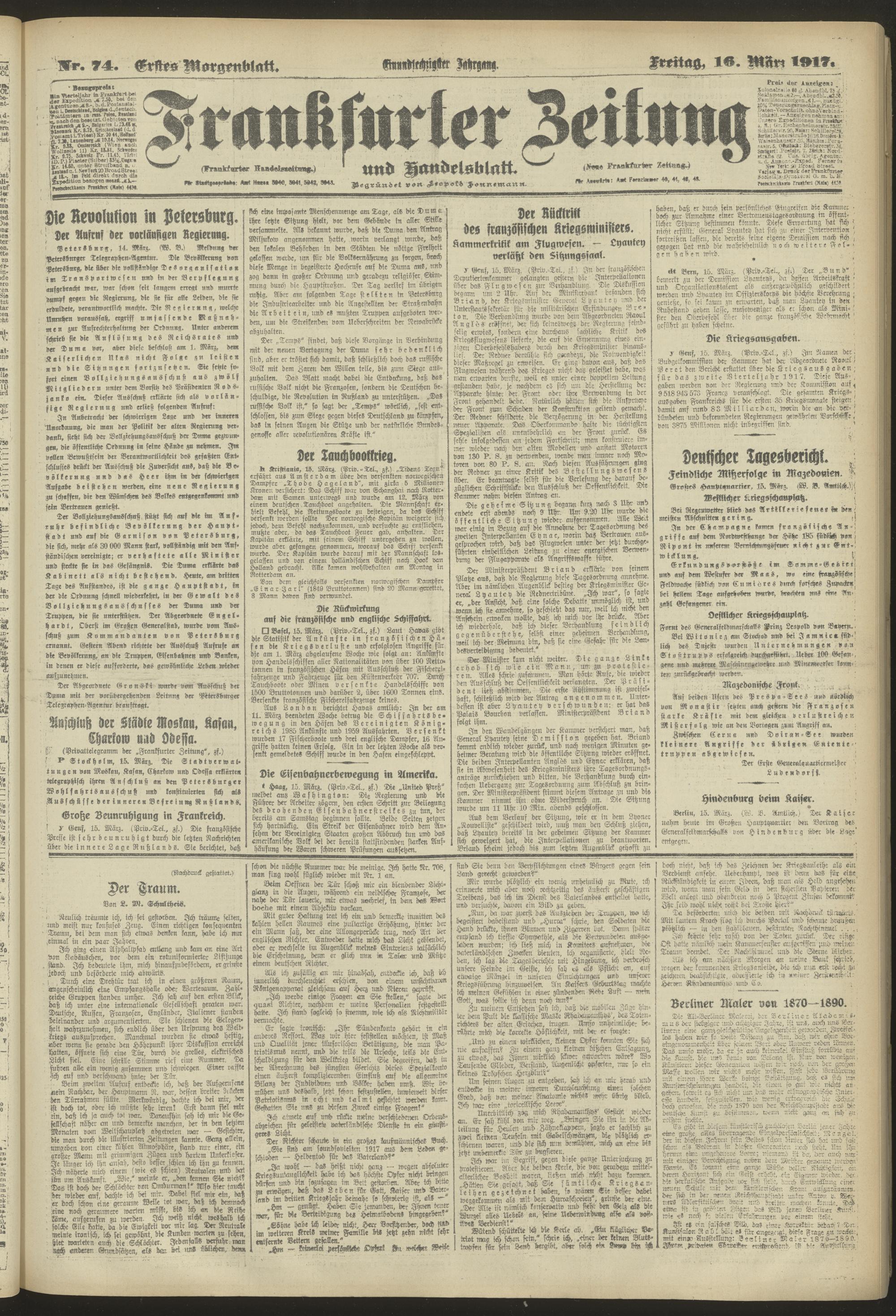 16.03.1917 = Nr. 74. Erstes Morgenblatt