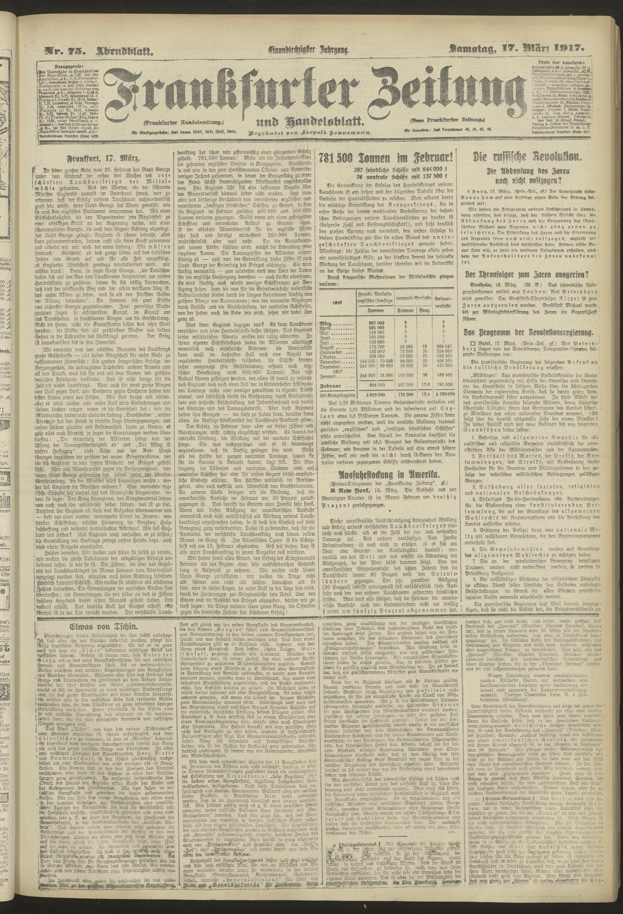 17.03.1917 = Nr. 75. Abendblatt