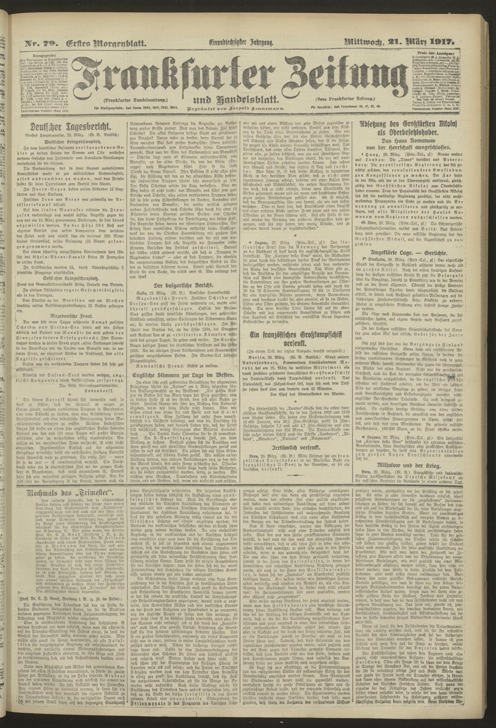21.03.1917 = Nr. 79. Erstes Morgenblatt