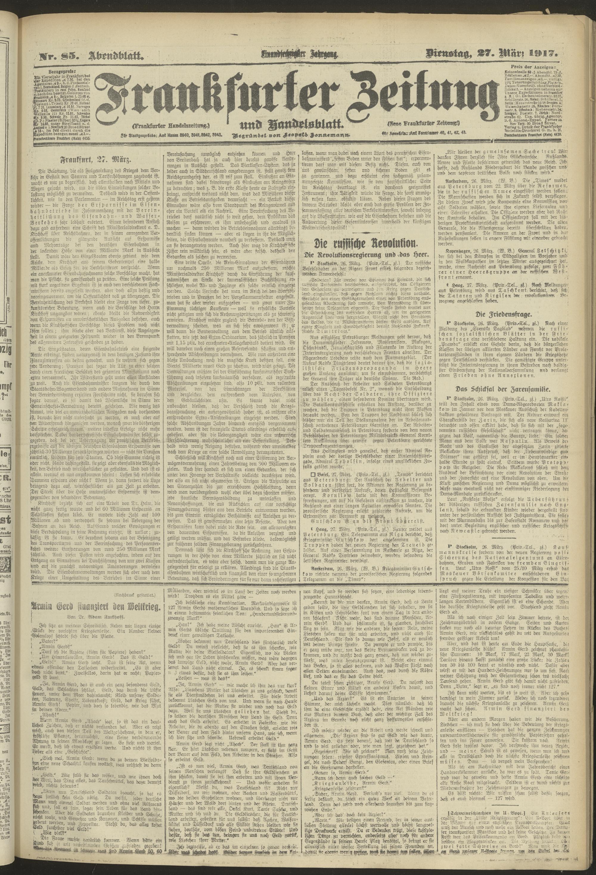 27.03.1917 = Nr. 85. Abendblatt