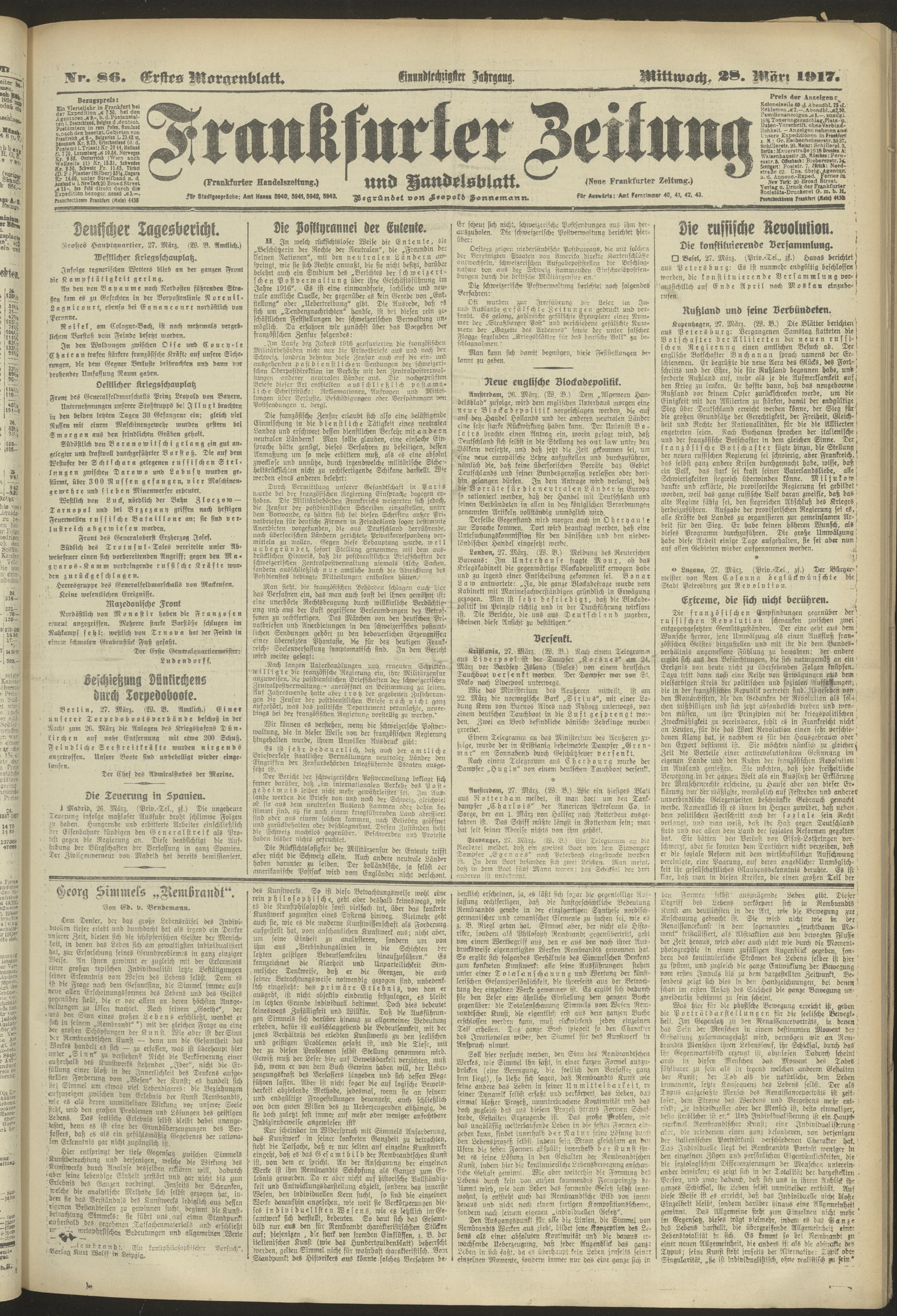 28.03.1917 = Nr. 86. Erstes Morgenblatt
