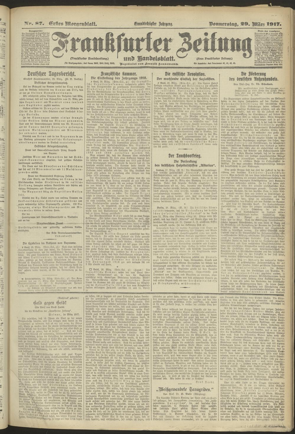 29.03.1917 = Nr. 87. Erstes Morgenblatt