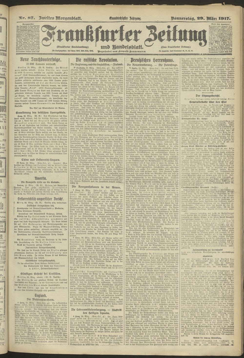 29.03.1917 = Nr. 87. Zweites Morgenblatt