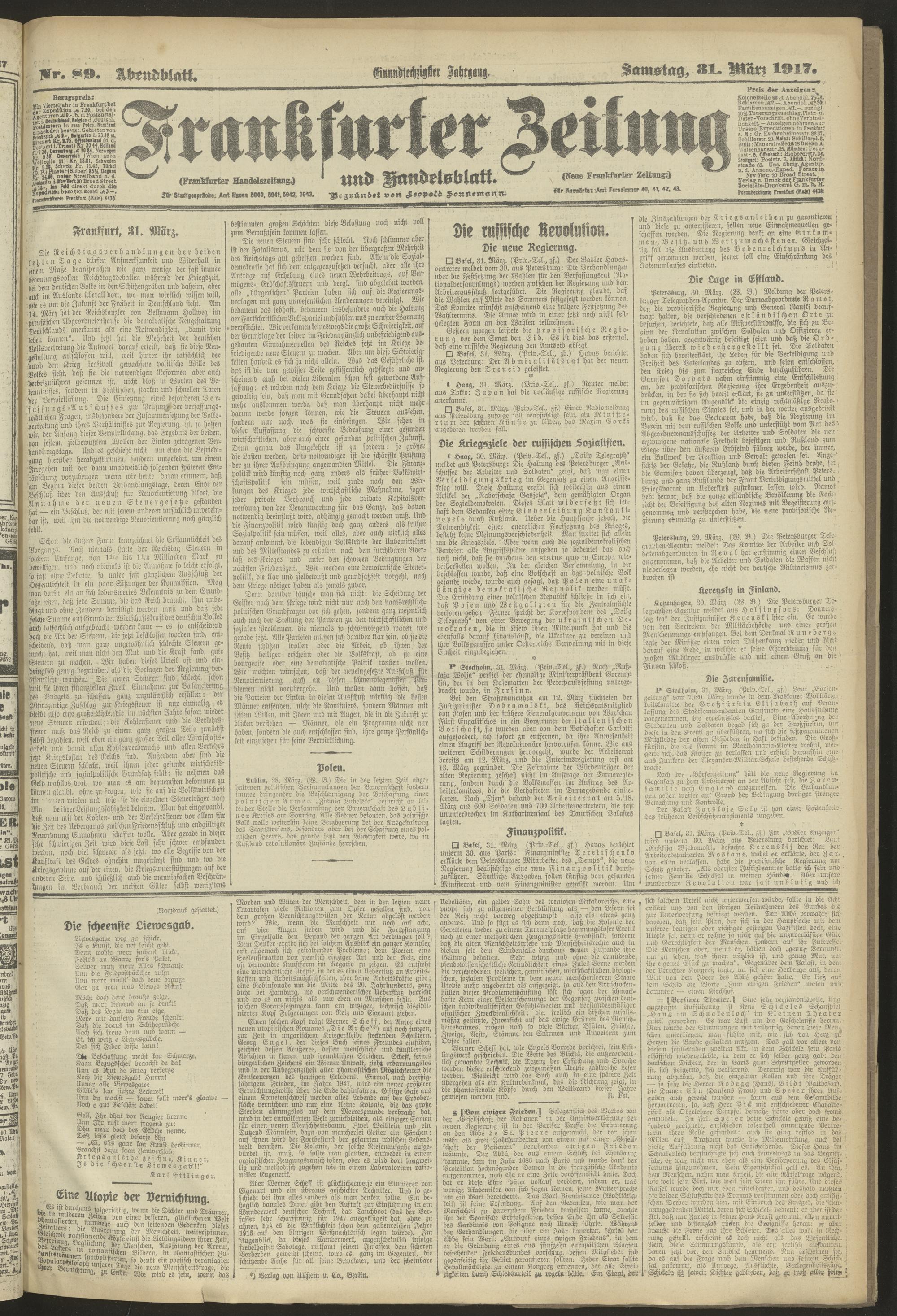 31.03.1917 = Nr. 89. Abendblatt