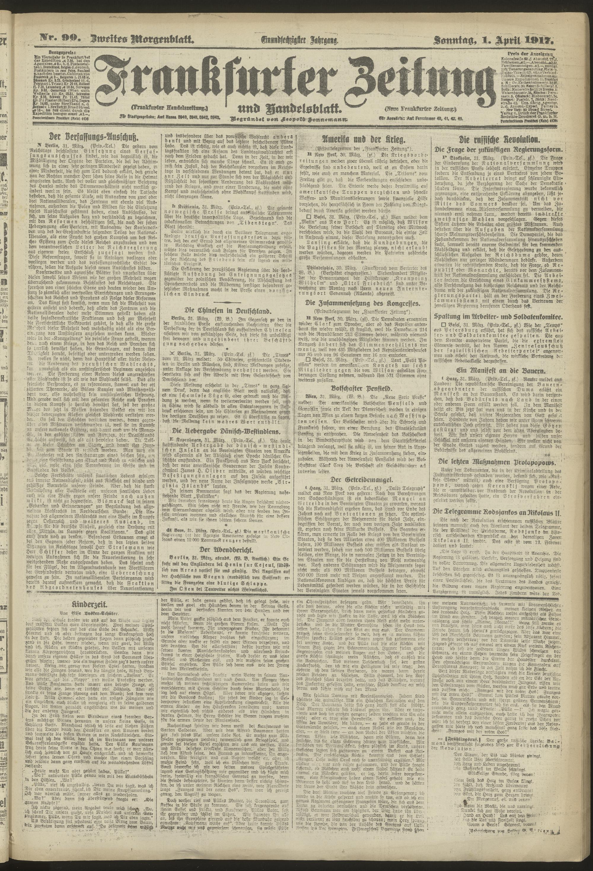 01.04.1917 = Nr. 90. Zweites Morgenblatt