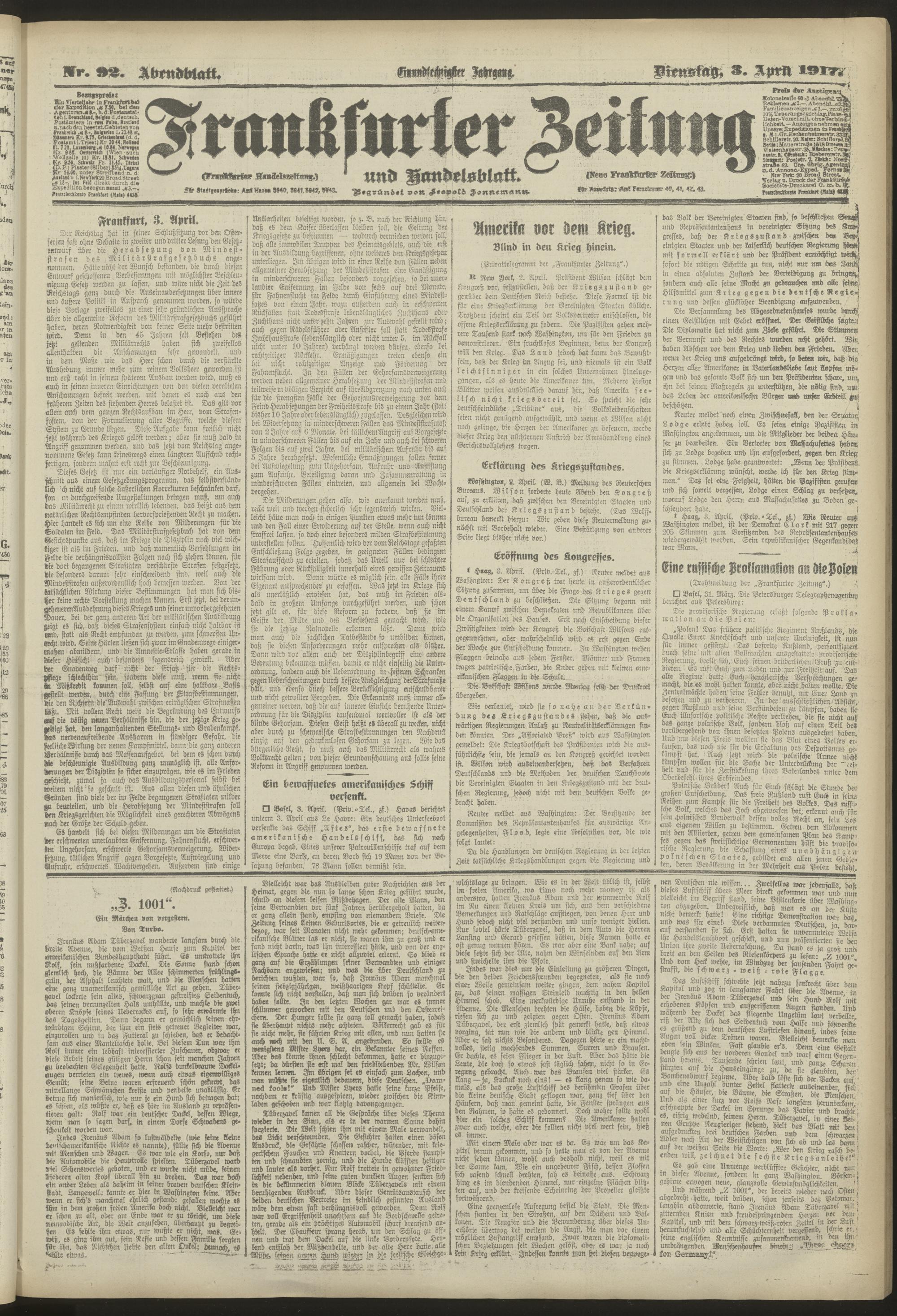 03.04.1917 = Nr. 92. Abendblatt