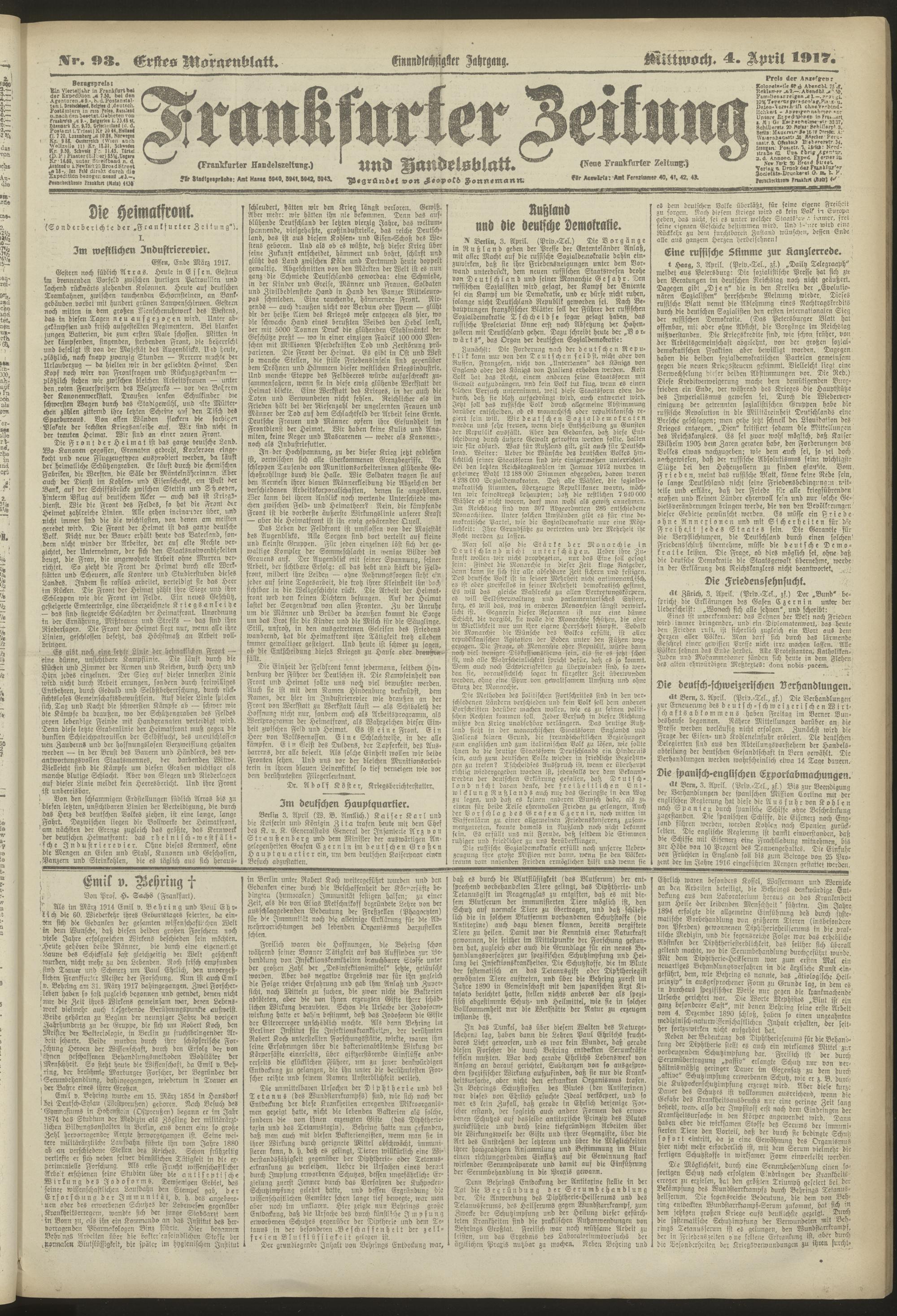 04.04.1917 = Nr. 93. Erstes Morgenblatt