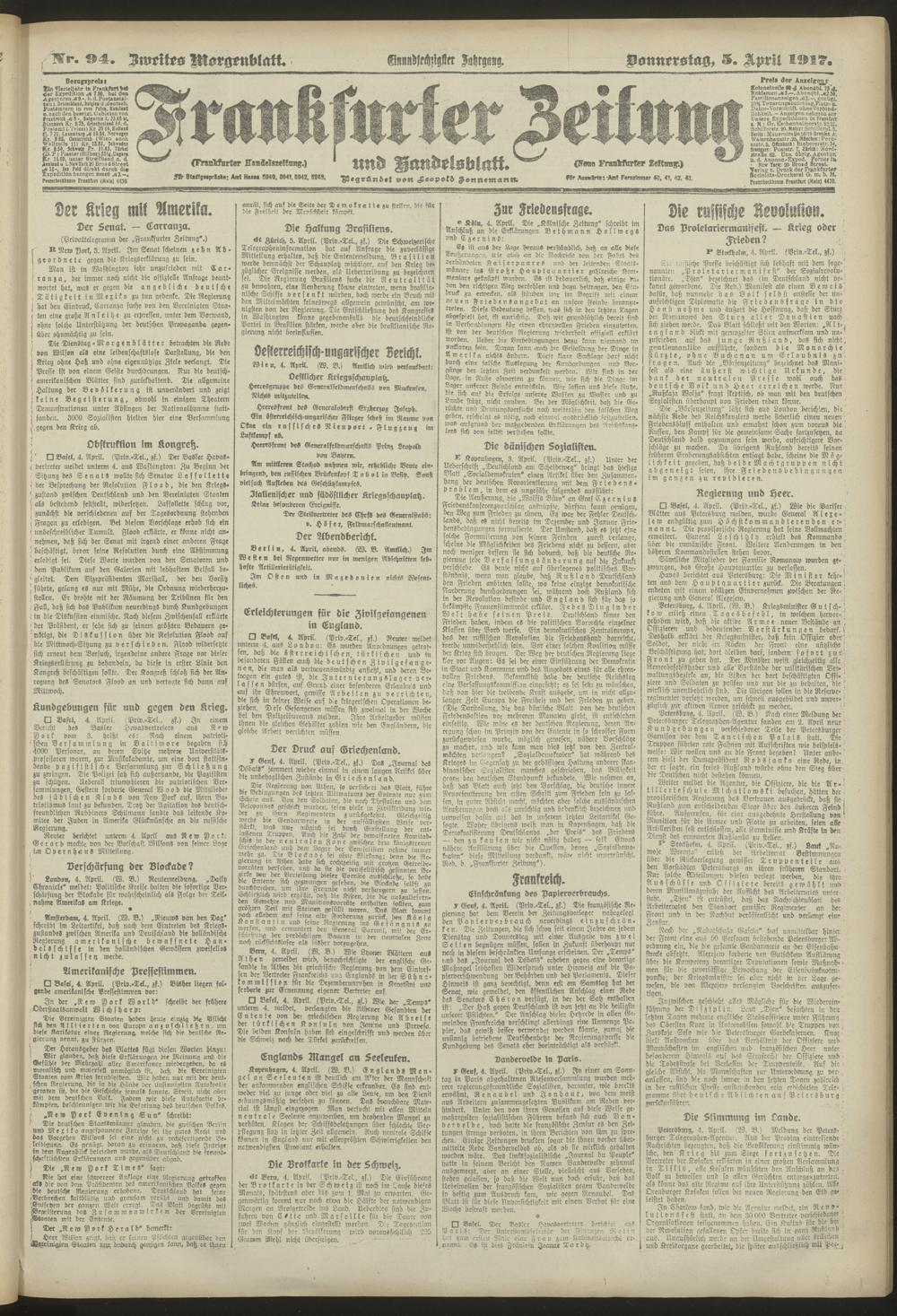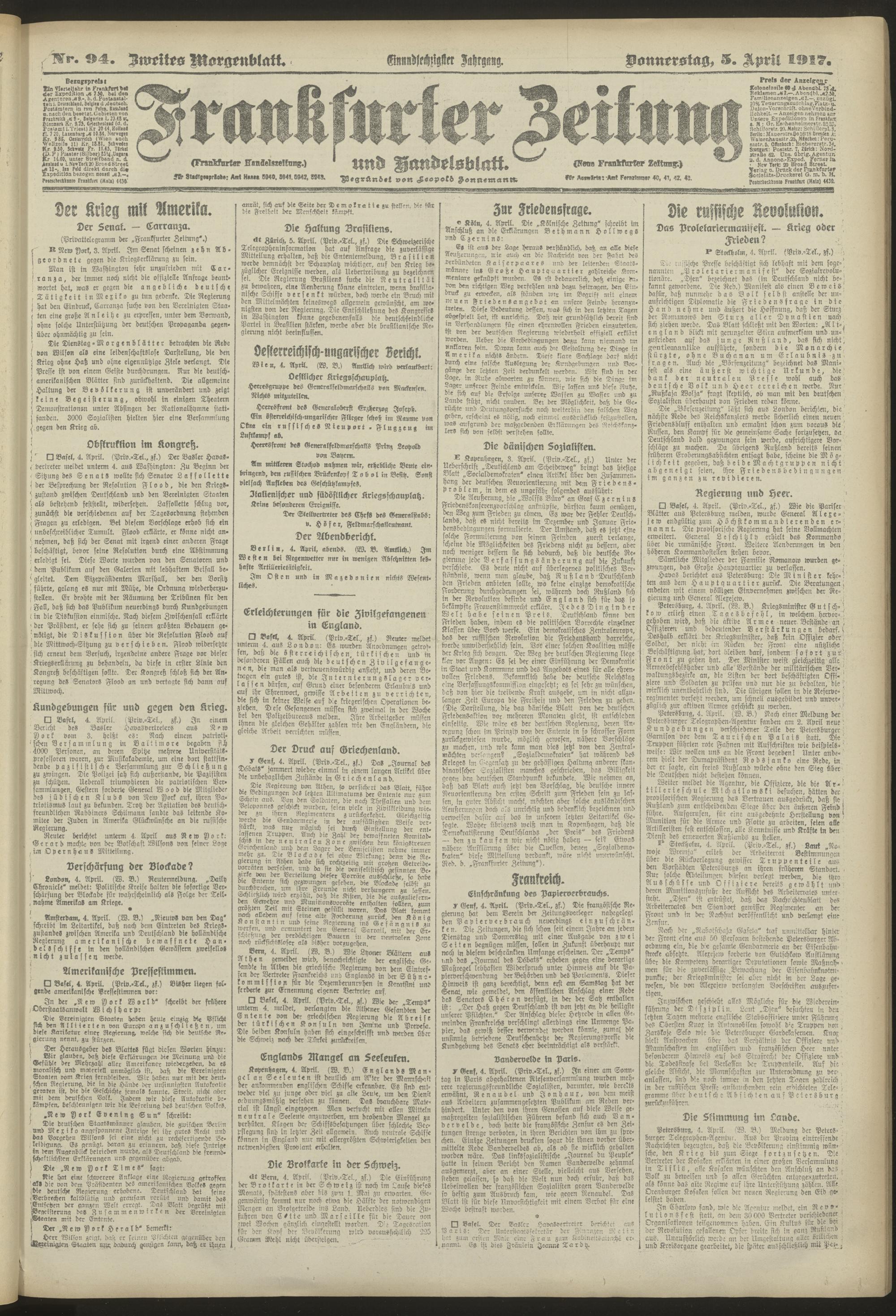 05.04.1917 = Nr. 94. Zweites Morgenblatt