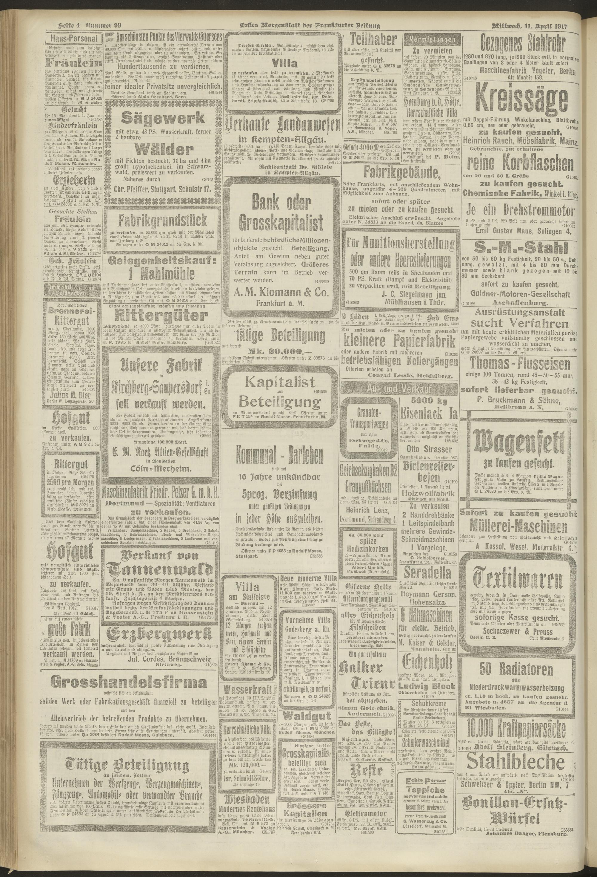 11.04.1917 = Nr. 99. Erstes Morgenblatt