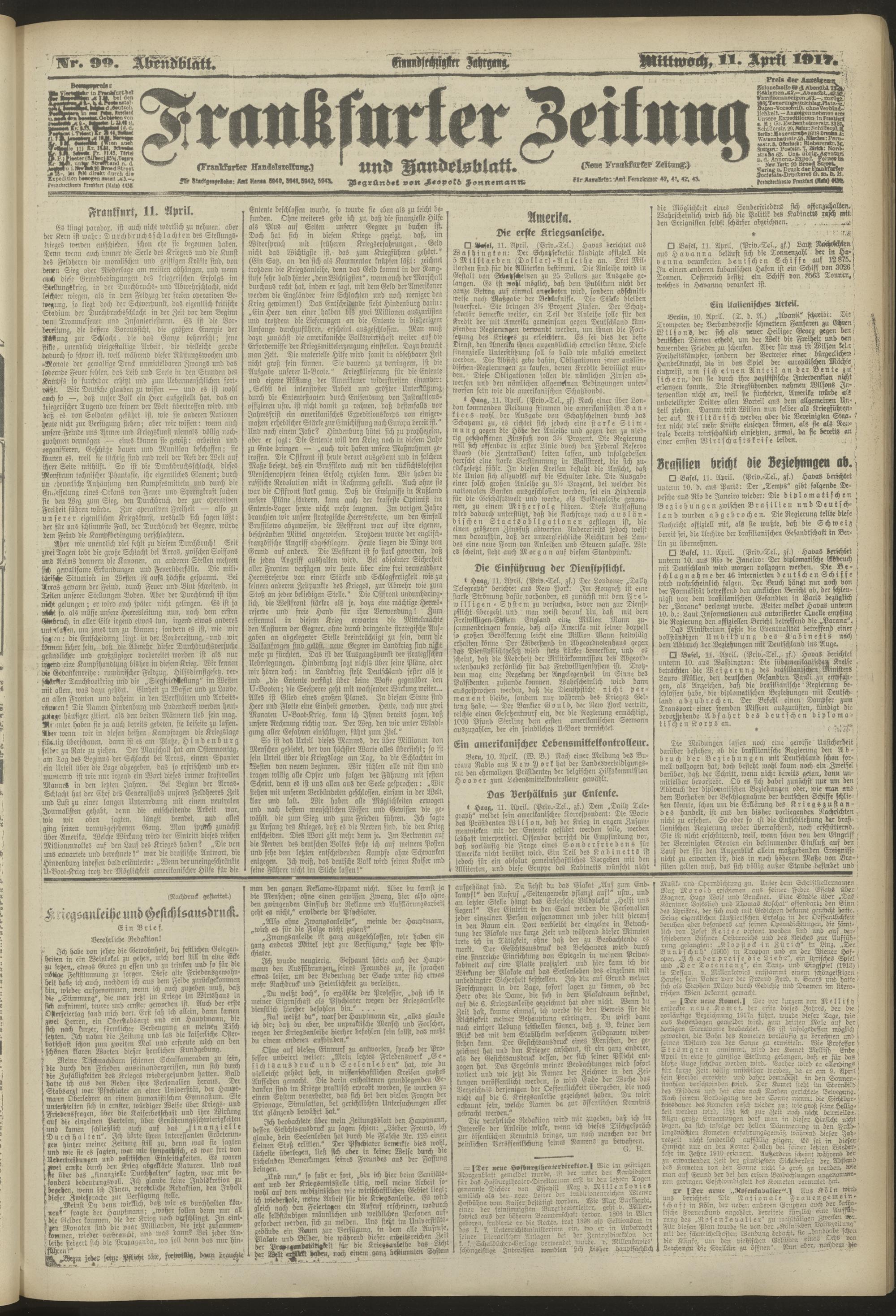 11.04.1917 = Nr. 99. Abendblatt